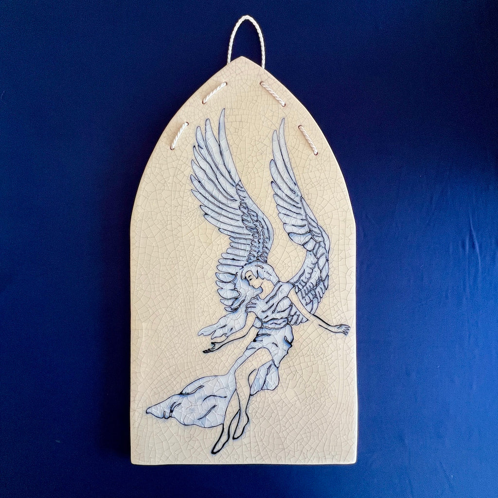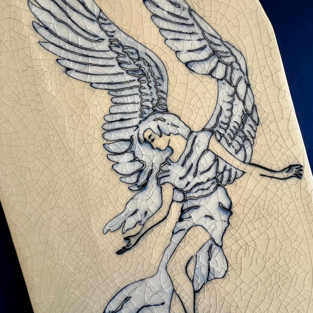 Individually hand carved ceramic inlay tile. Each piece is an original and cannot be replicated.
