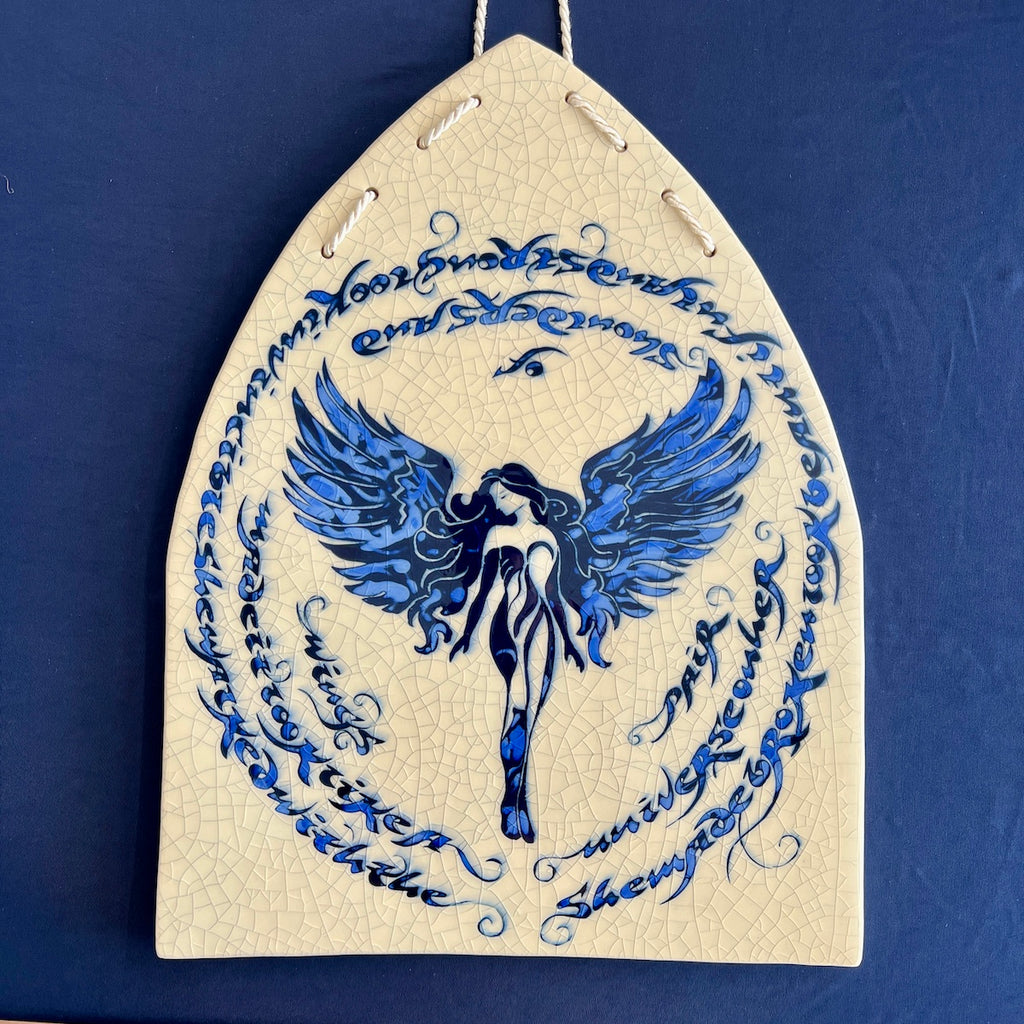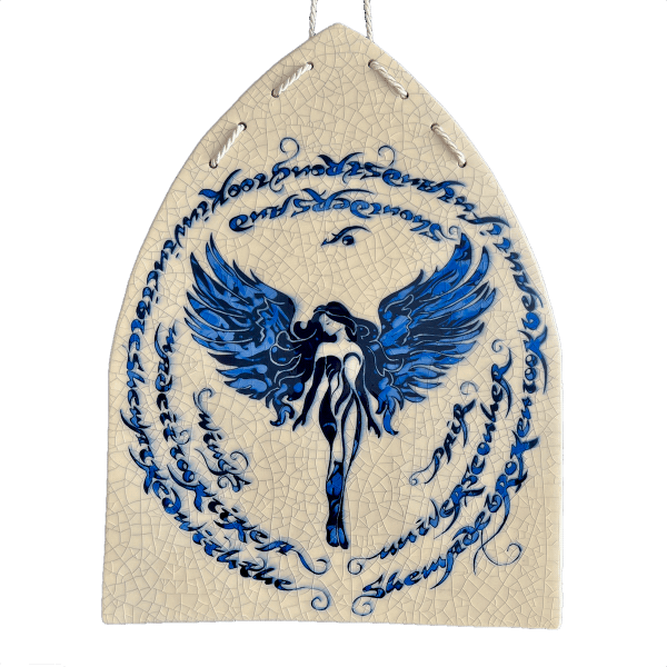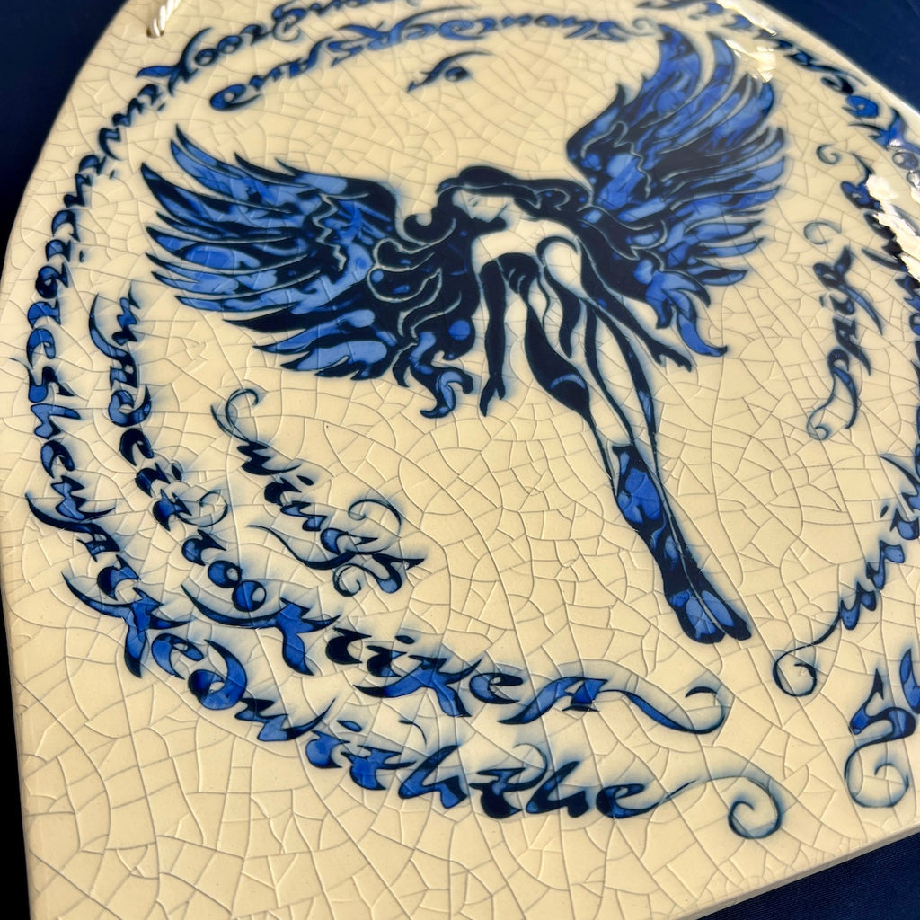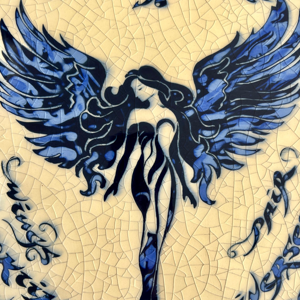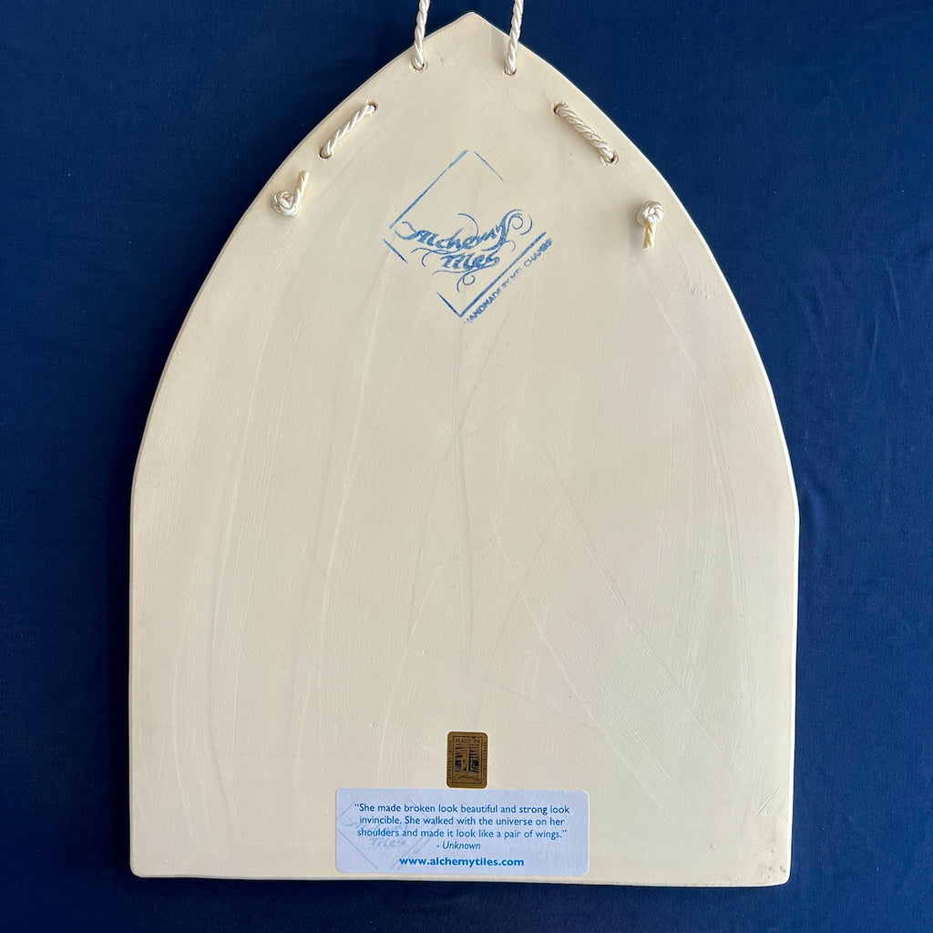 Individually hand carved ceramic inlay tile. Each piece is an original and cannot be replicated.