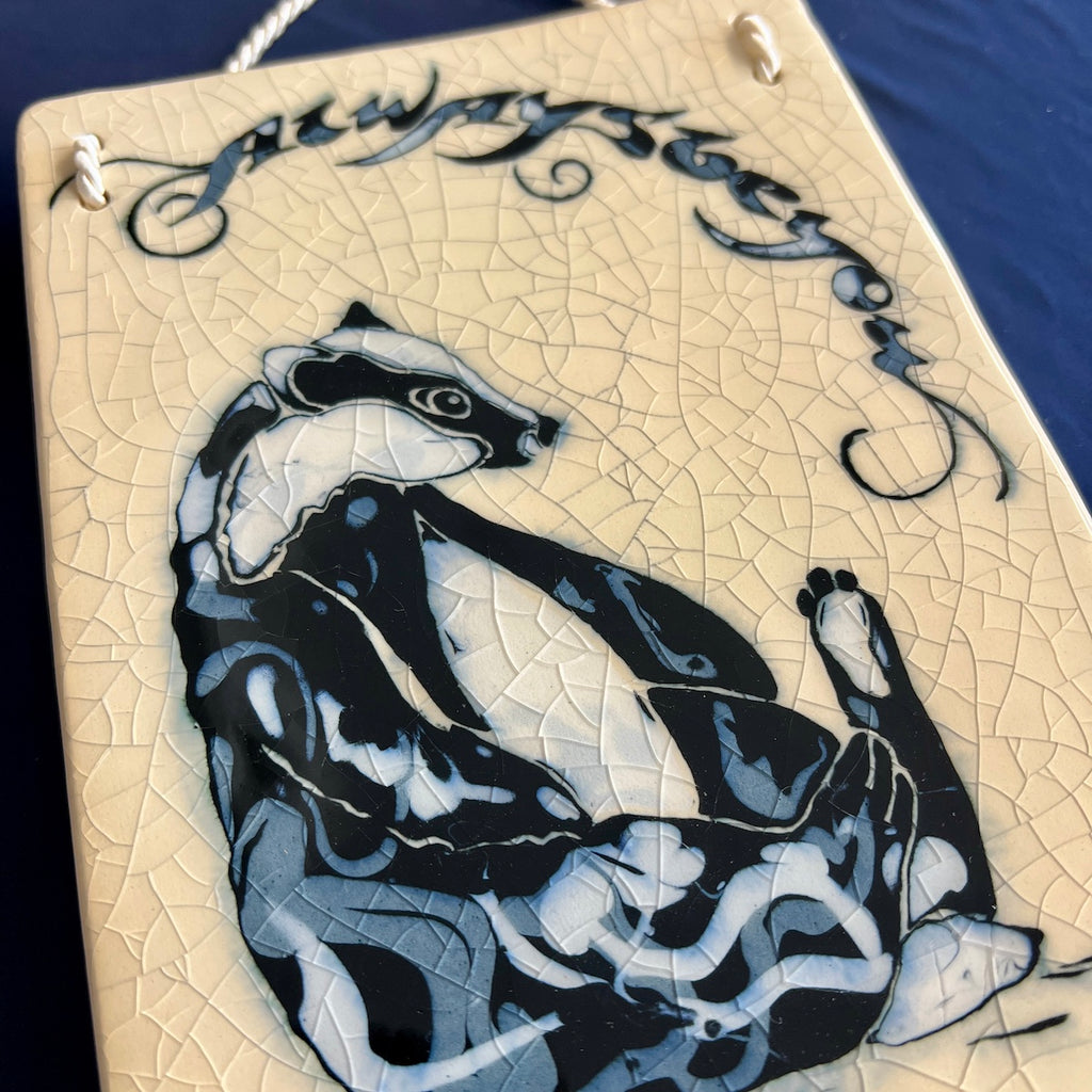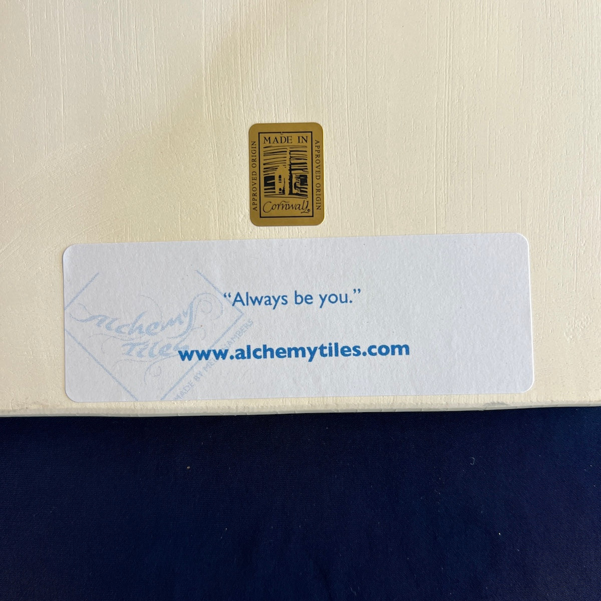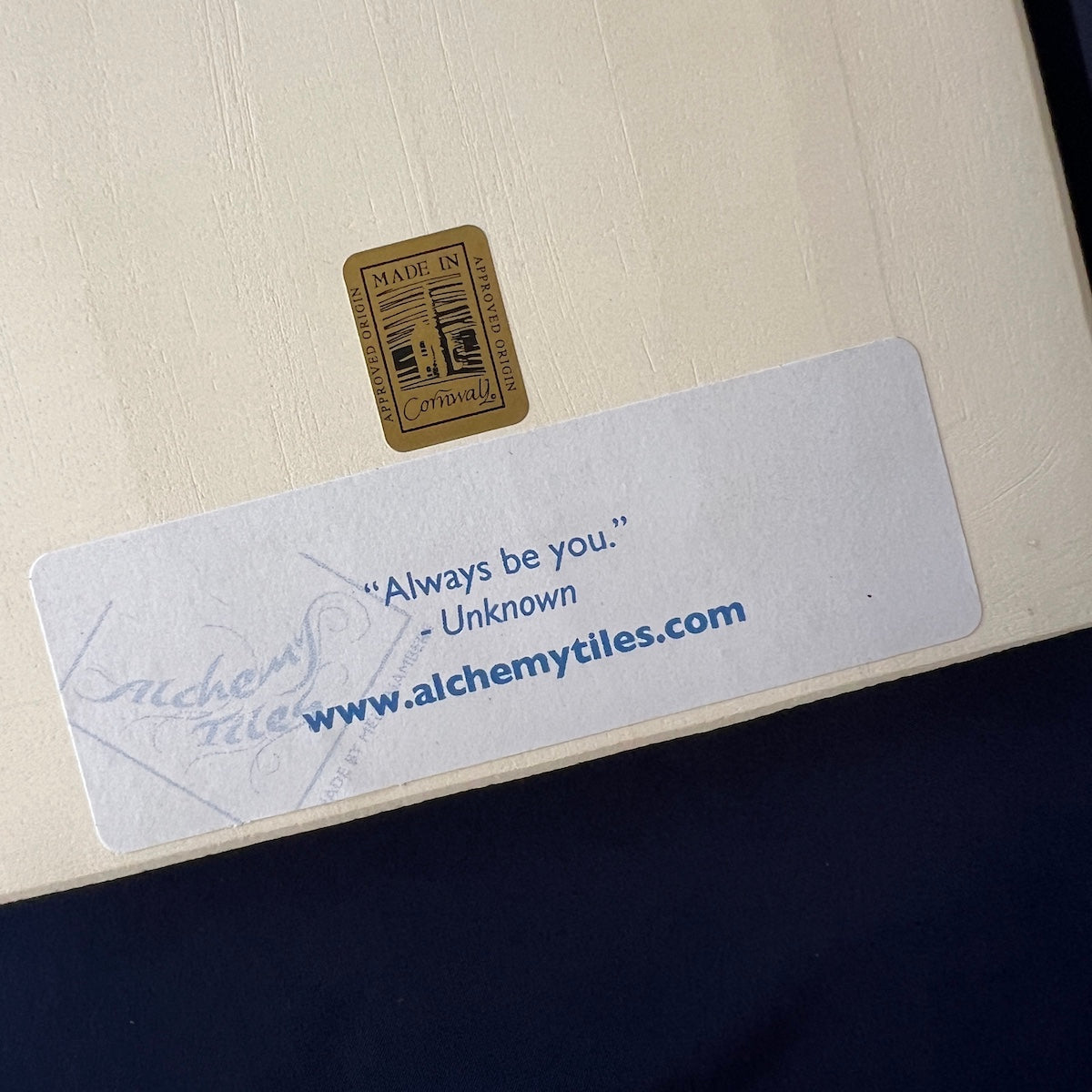 Individually hand carved ceramic inlay tile. Each piece is an original and cannot be replicated.