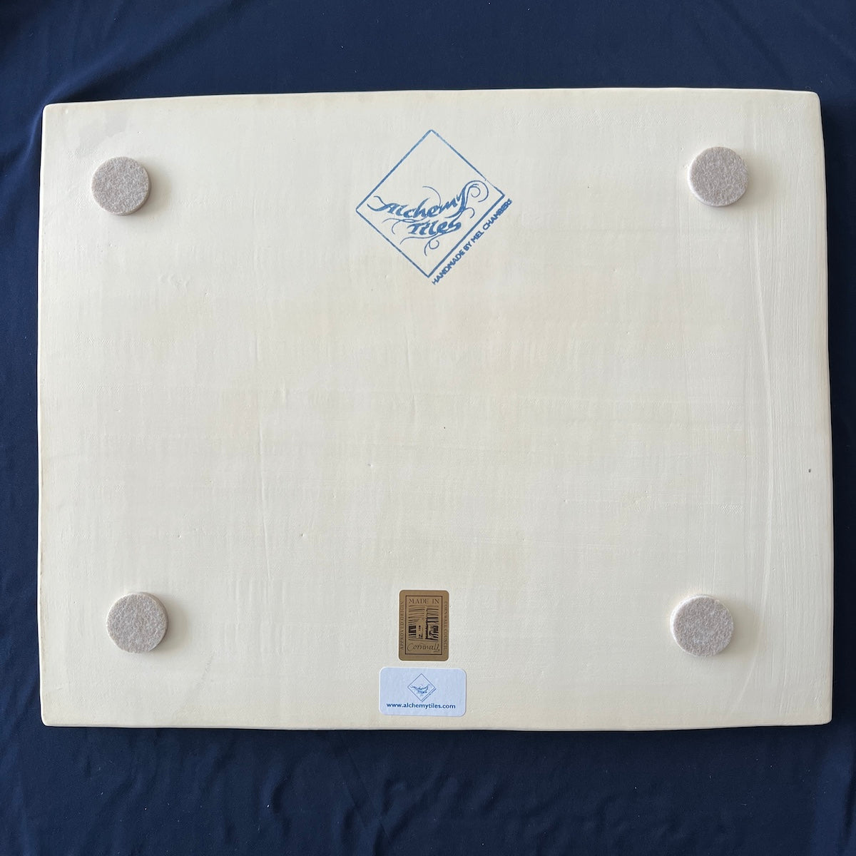 Individually hand carved ceramic inlay tile. Each piece is an original and cannot be replicated.