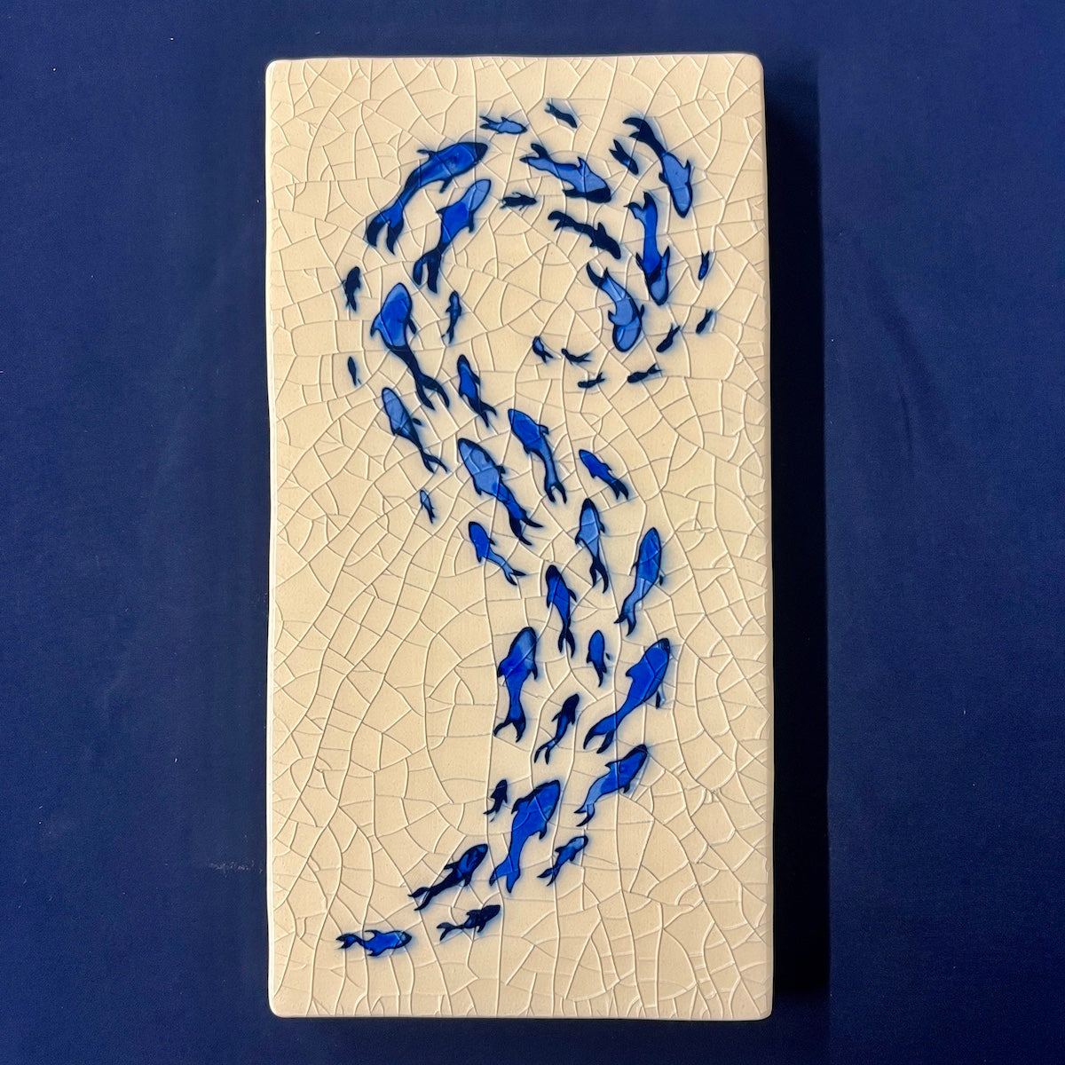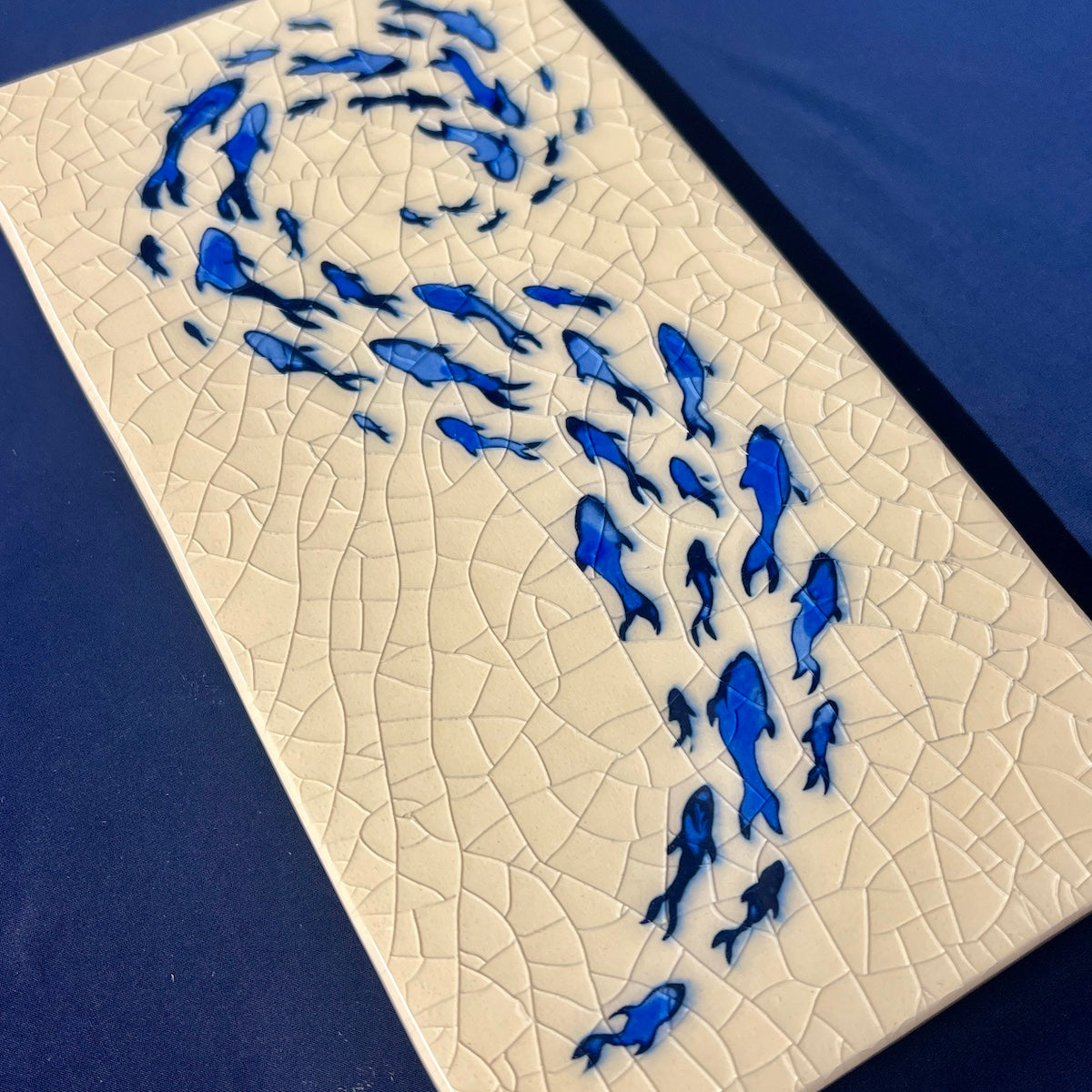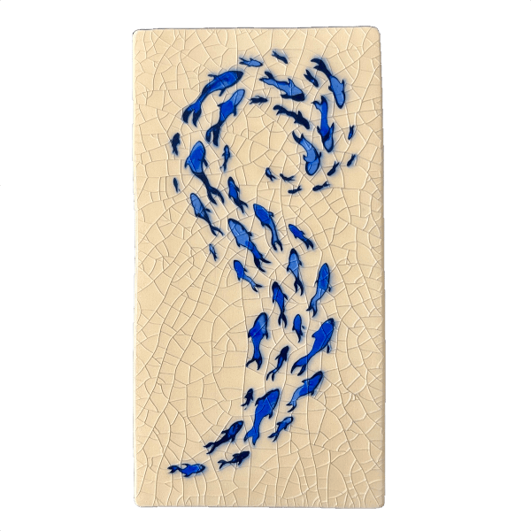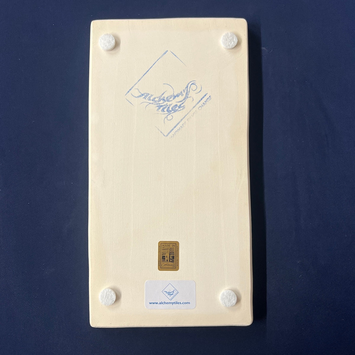 Individually hand carved ceramic inlay tile. Each piece is an original and cannot be replicated.