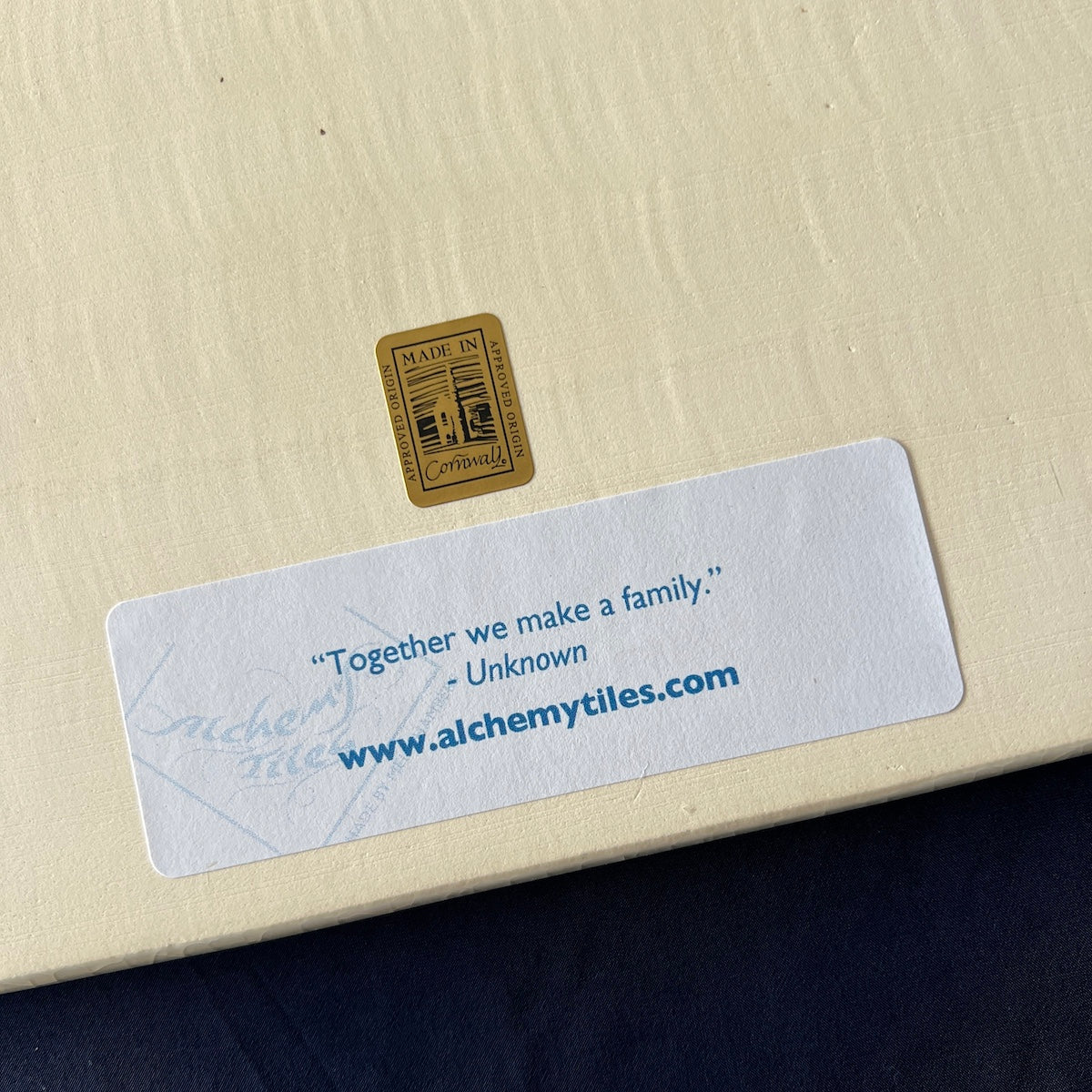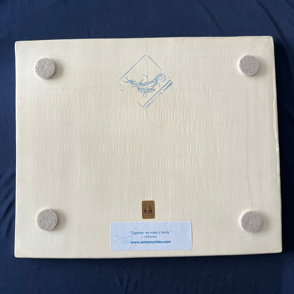 Individually hand carved ceramic inlay tile. Each piece is an original and cannot be replicated.