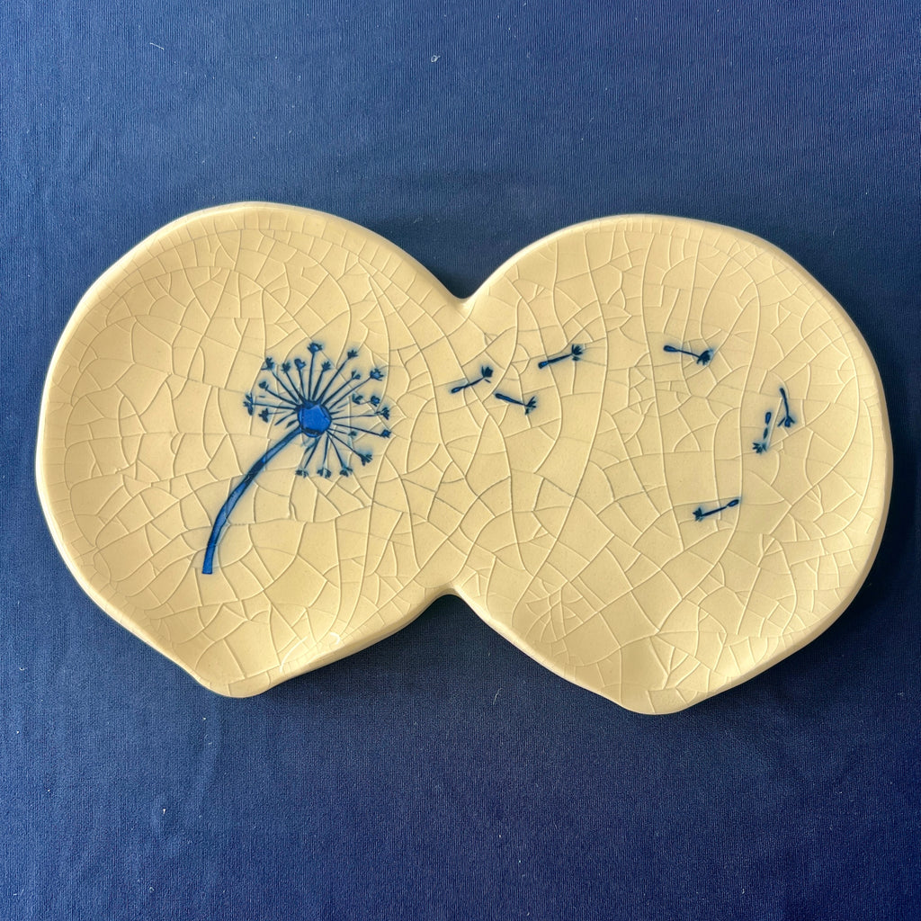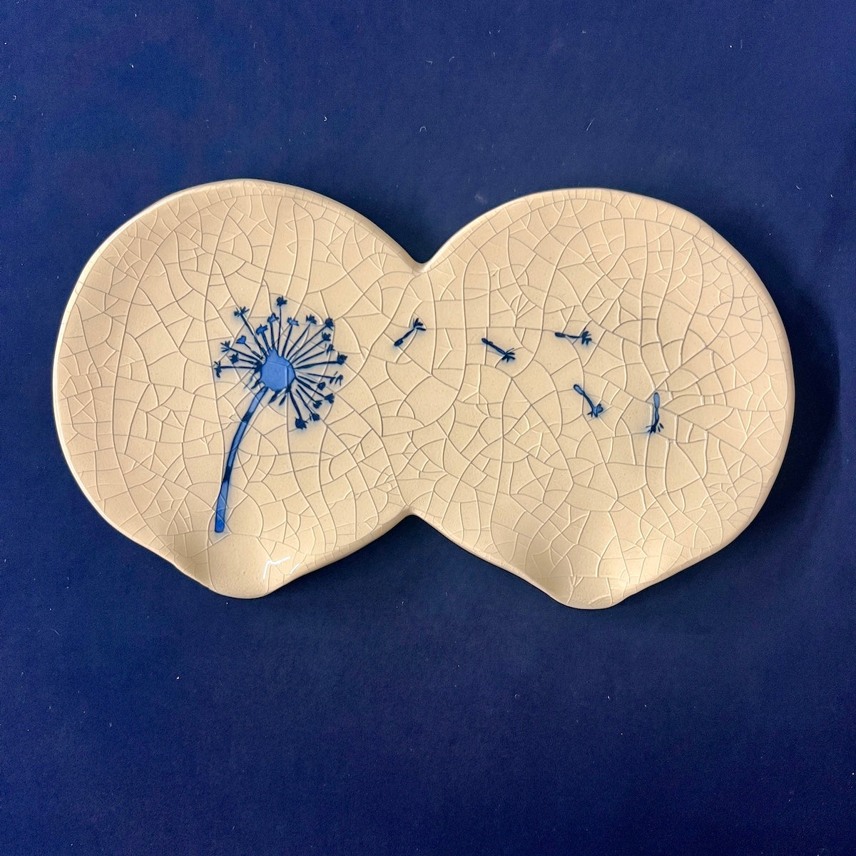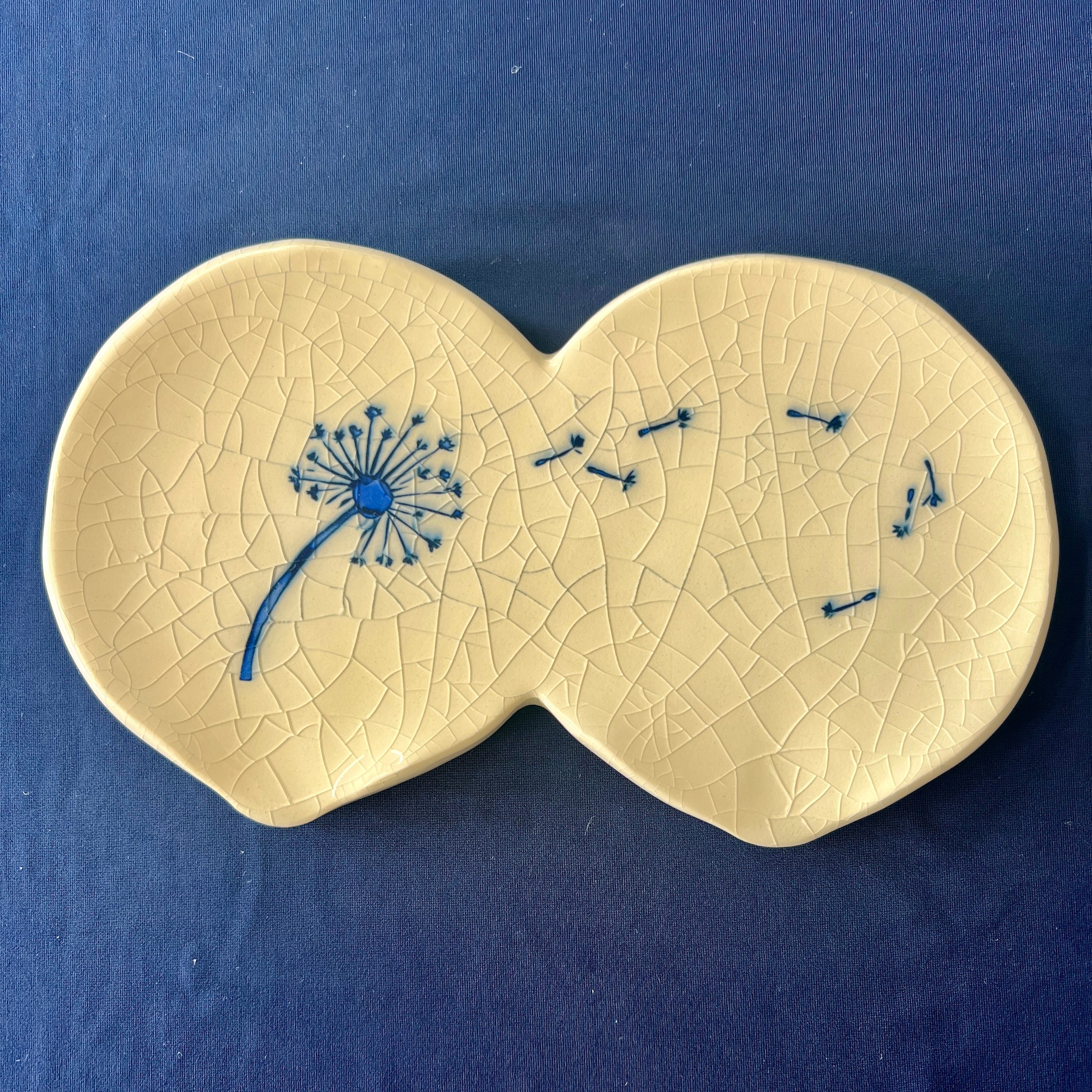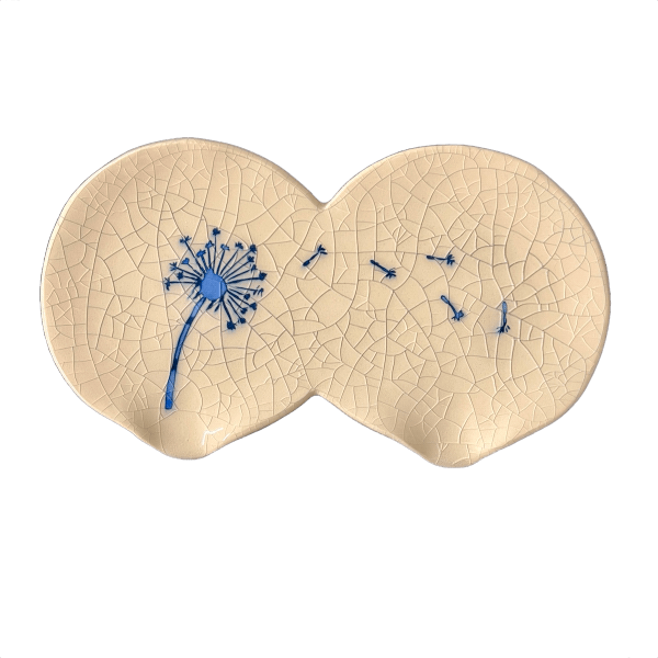 Individually hand carved ceramic inlay spoon rest and complimentary wooden spoon.