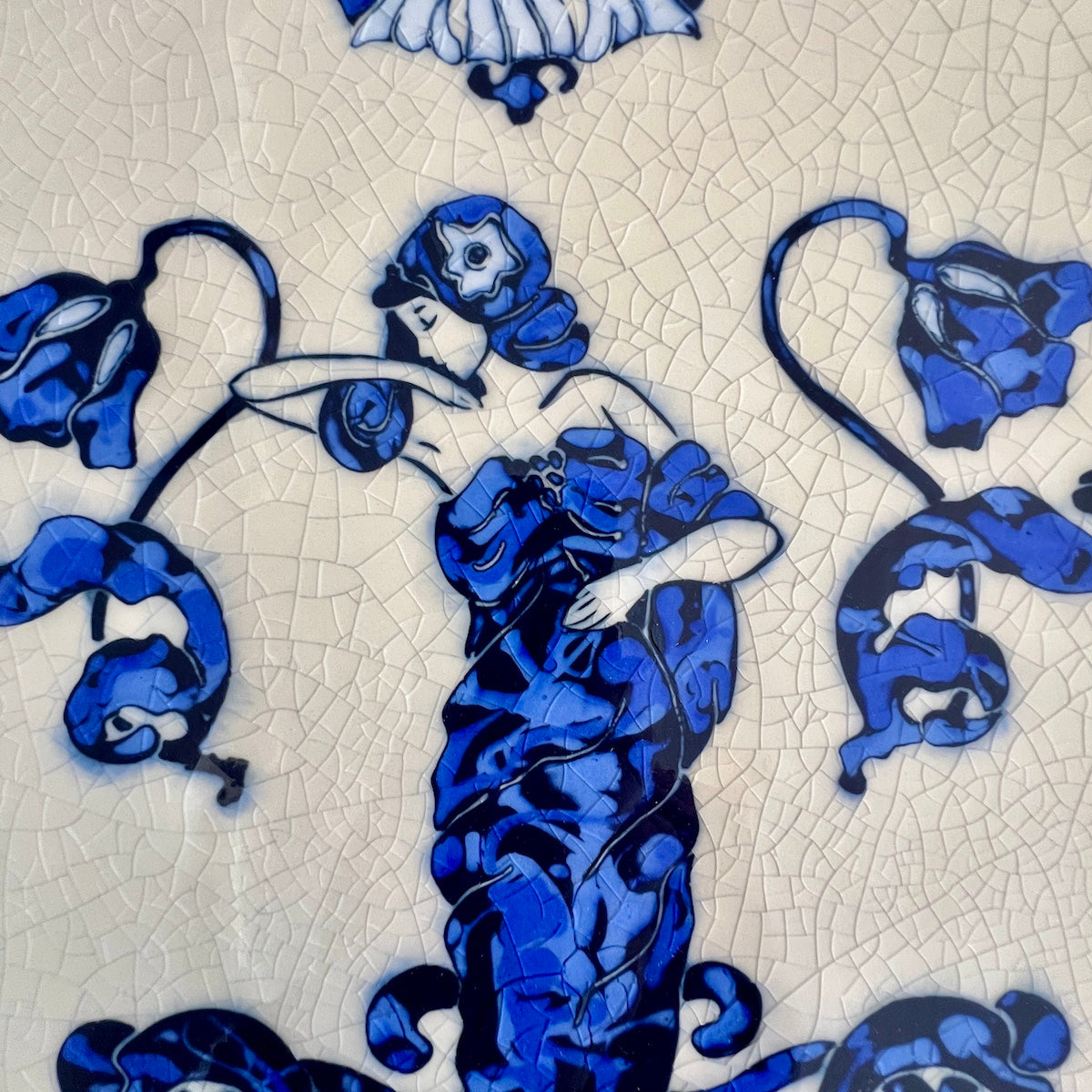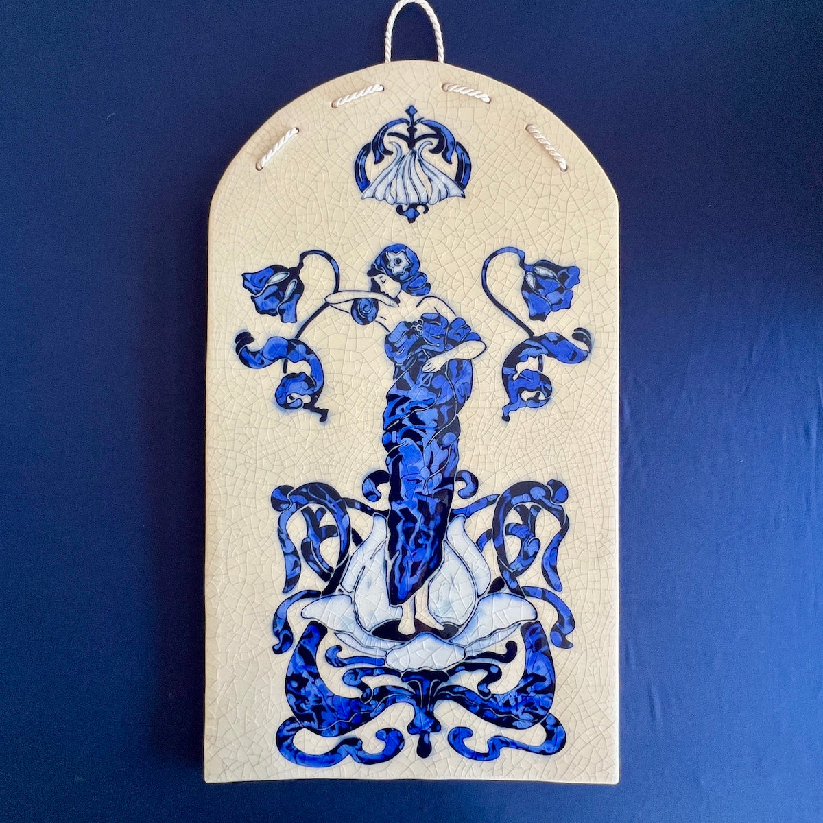 Individually hand carved ceramic inlay tile. Each piece is an original and cannot be replicated.