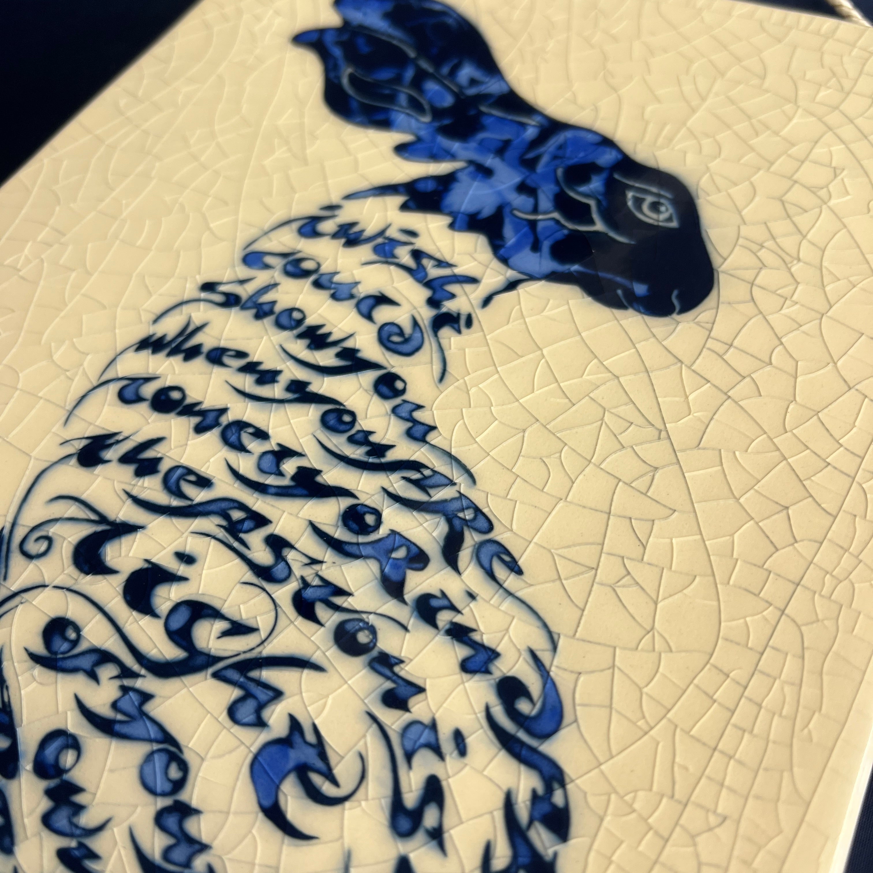 Individually hand carved ceramic inlay tile. Each piece is an original and cannot be replicated.