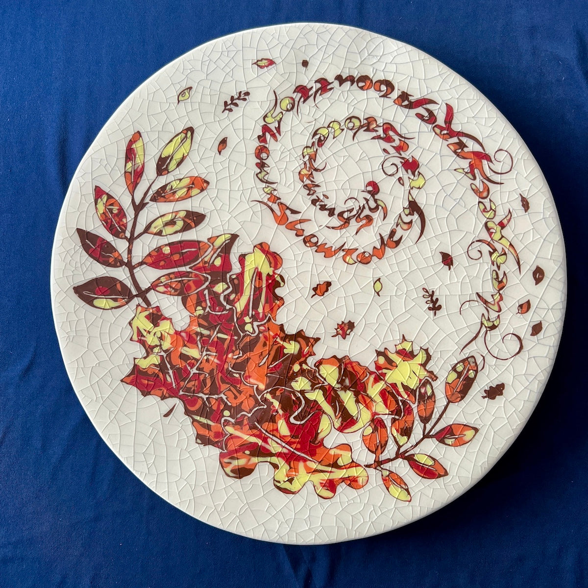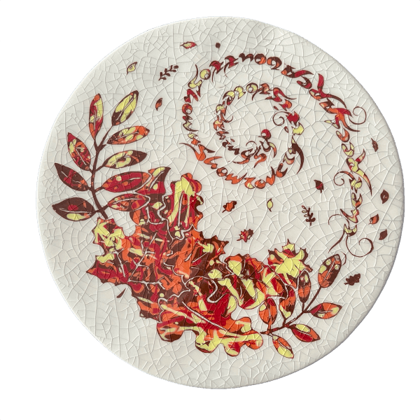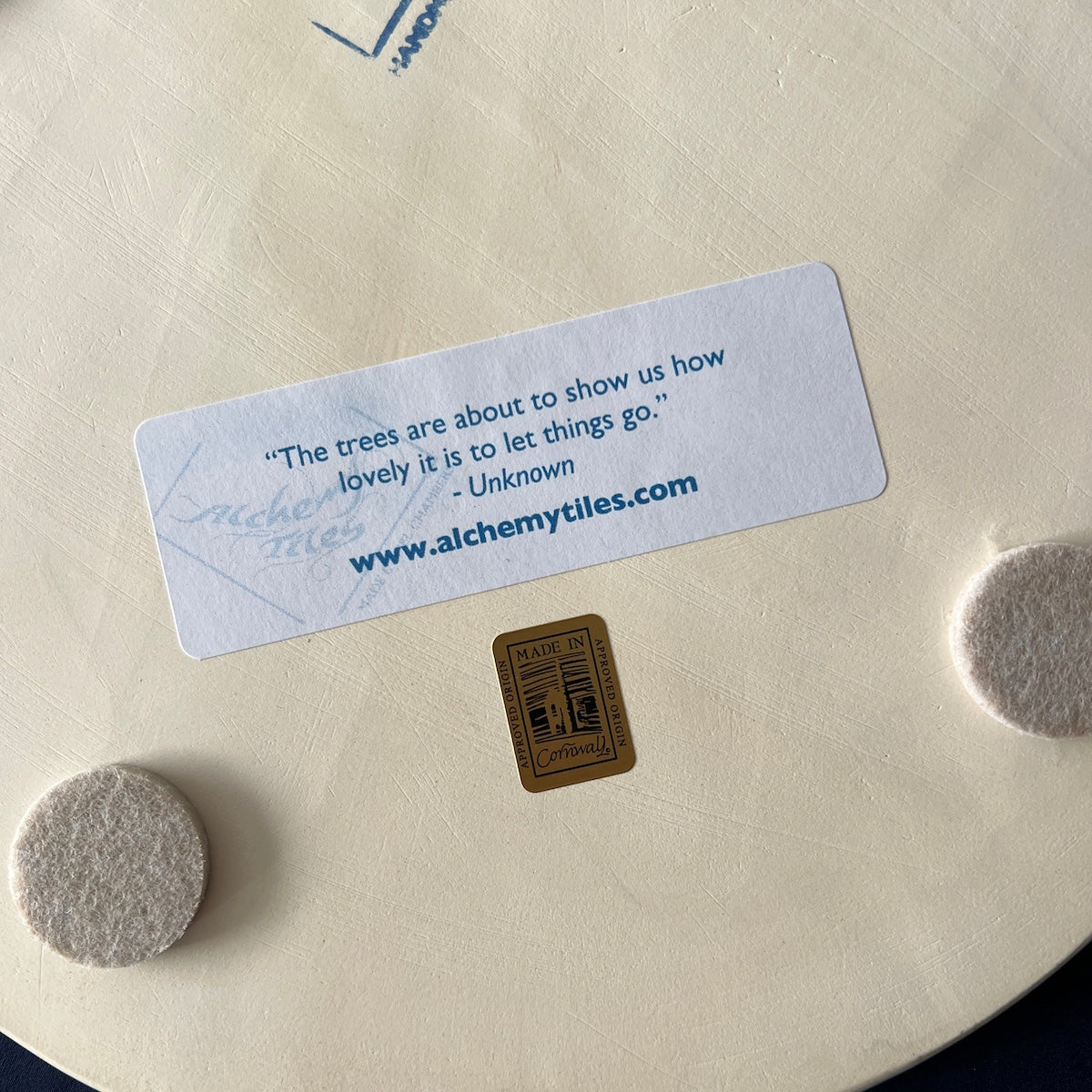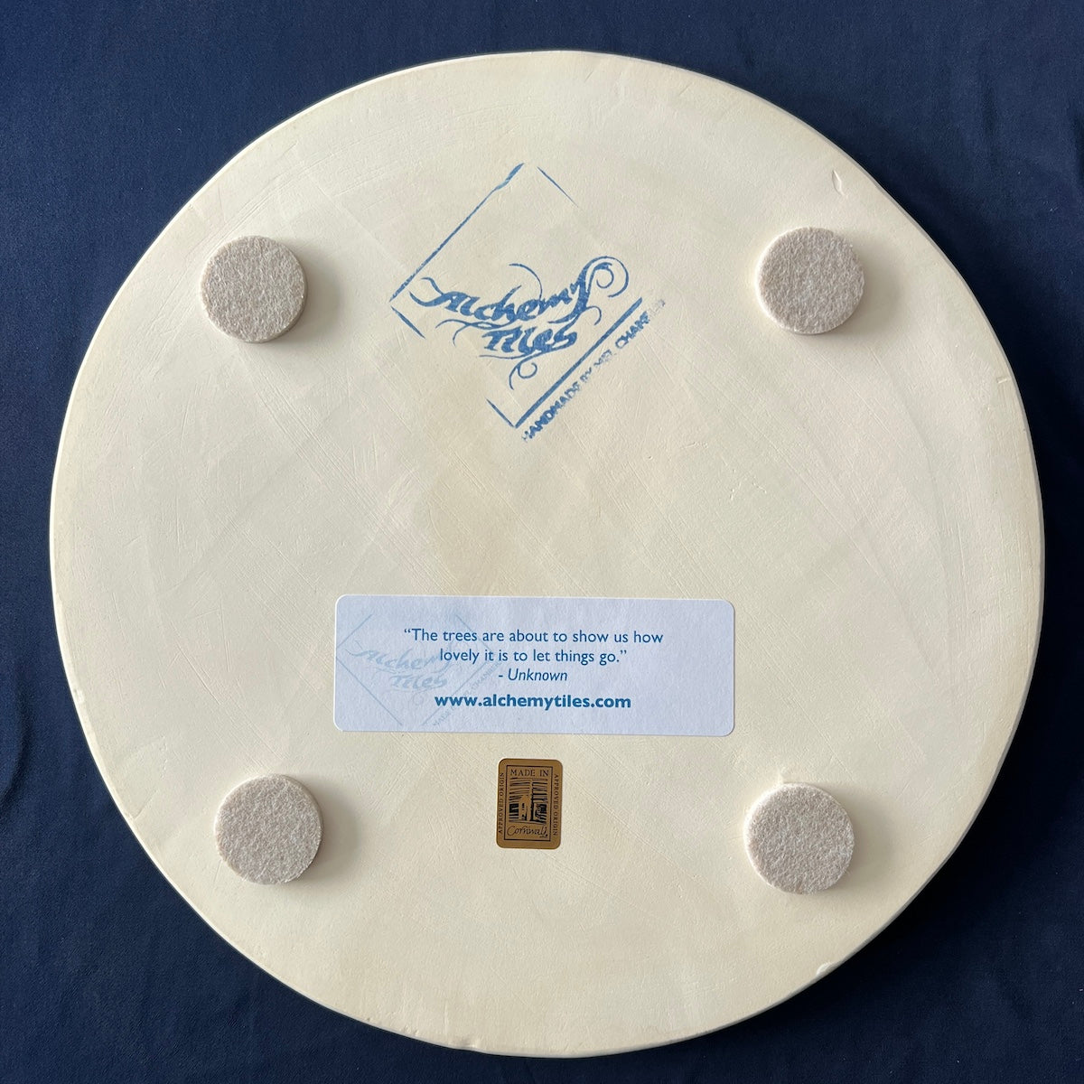 Individually hand carved ceramic inlay tile. Each piece is an original and cannot be replicated.
