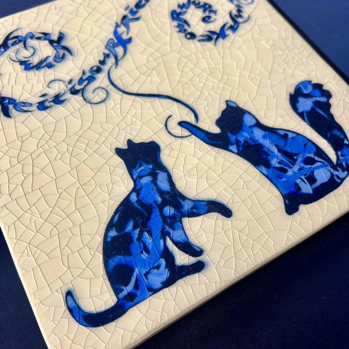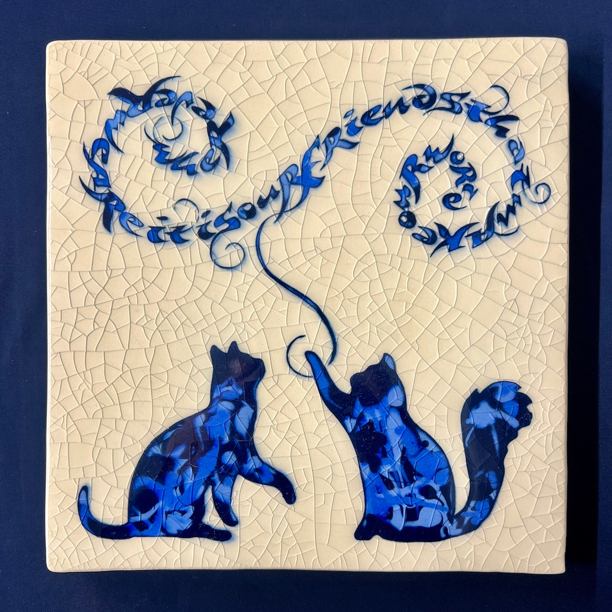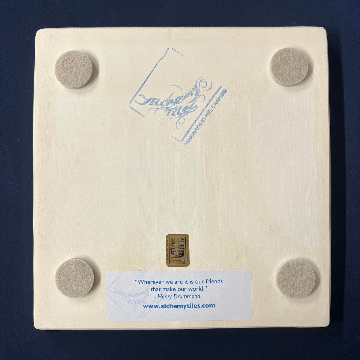 Individually hand carved ceramic inlay tile. Each piece is an original and cannot be replicated.