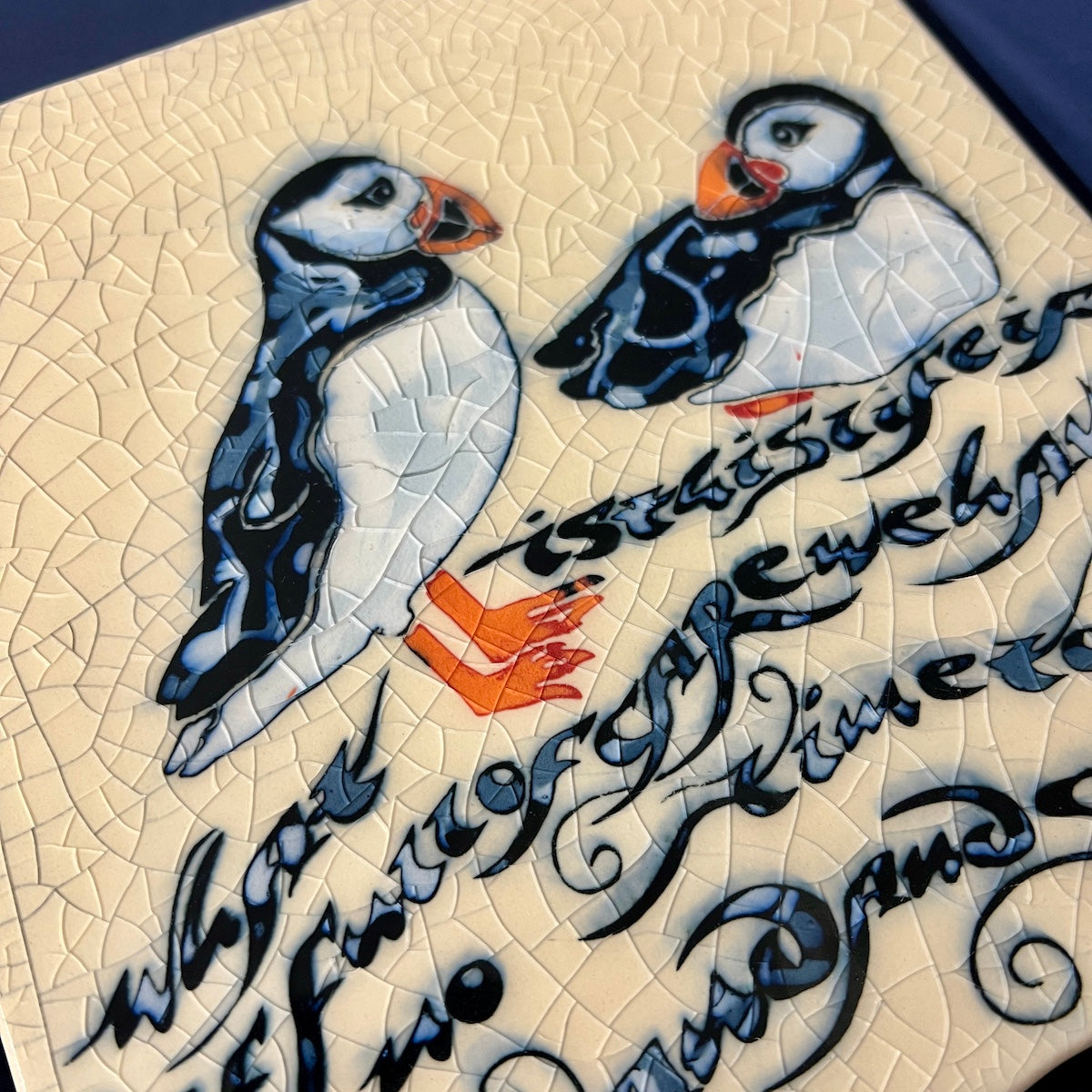 Large Square Trivet - Puffins