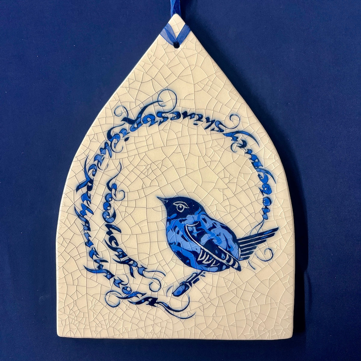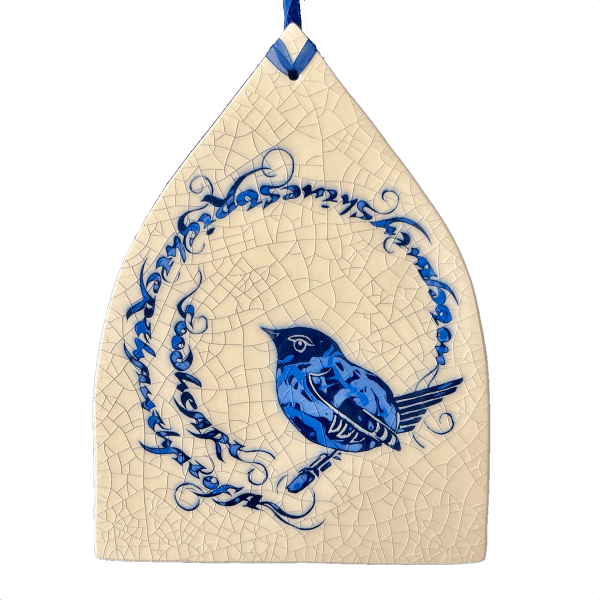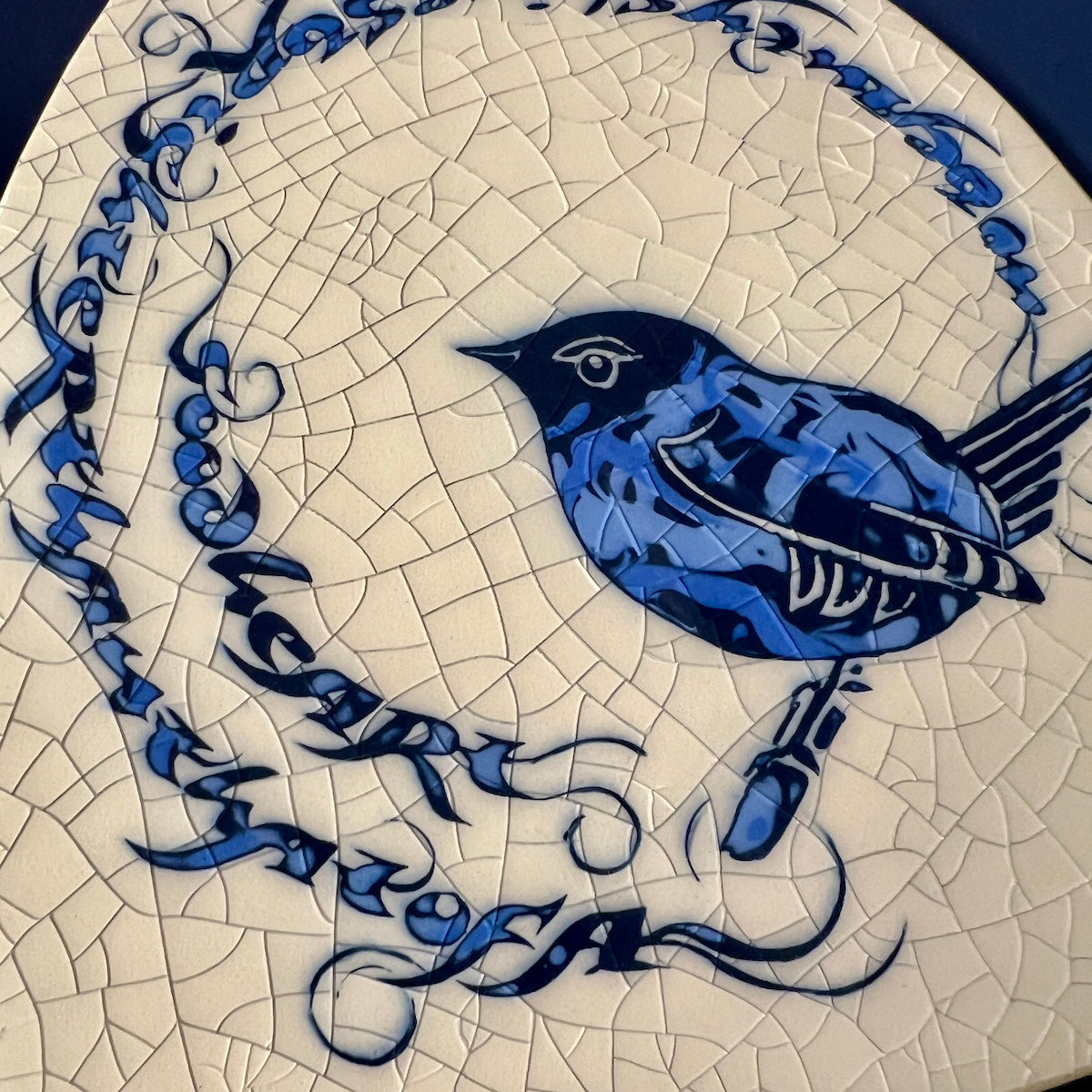 Individually hand carved ceramic inlay tile. Each piece is an original and cannot be replicated.