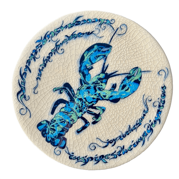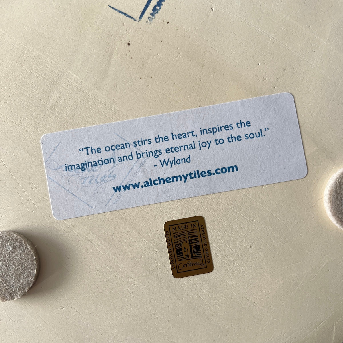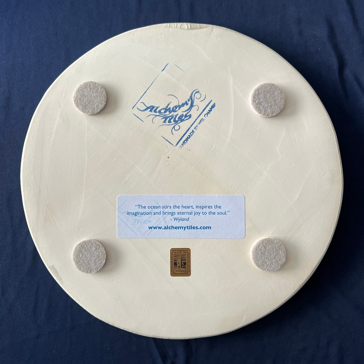 Individually hand carved ceramic inlay tile. Each piece is an original and cannot be replicated.