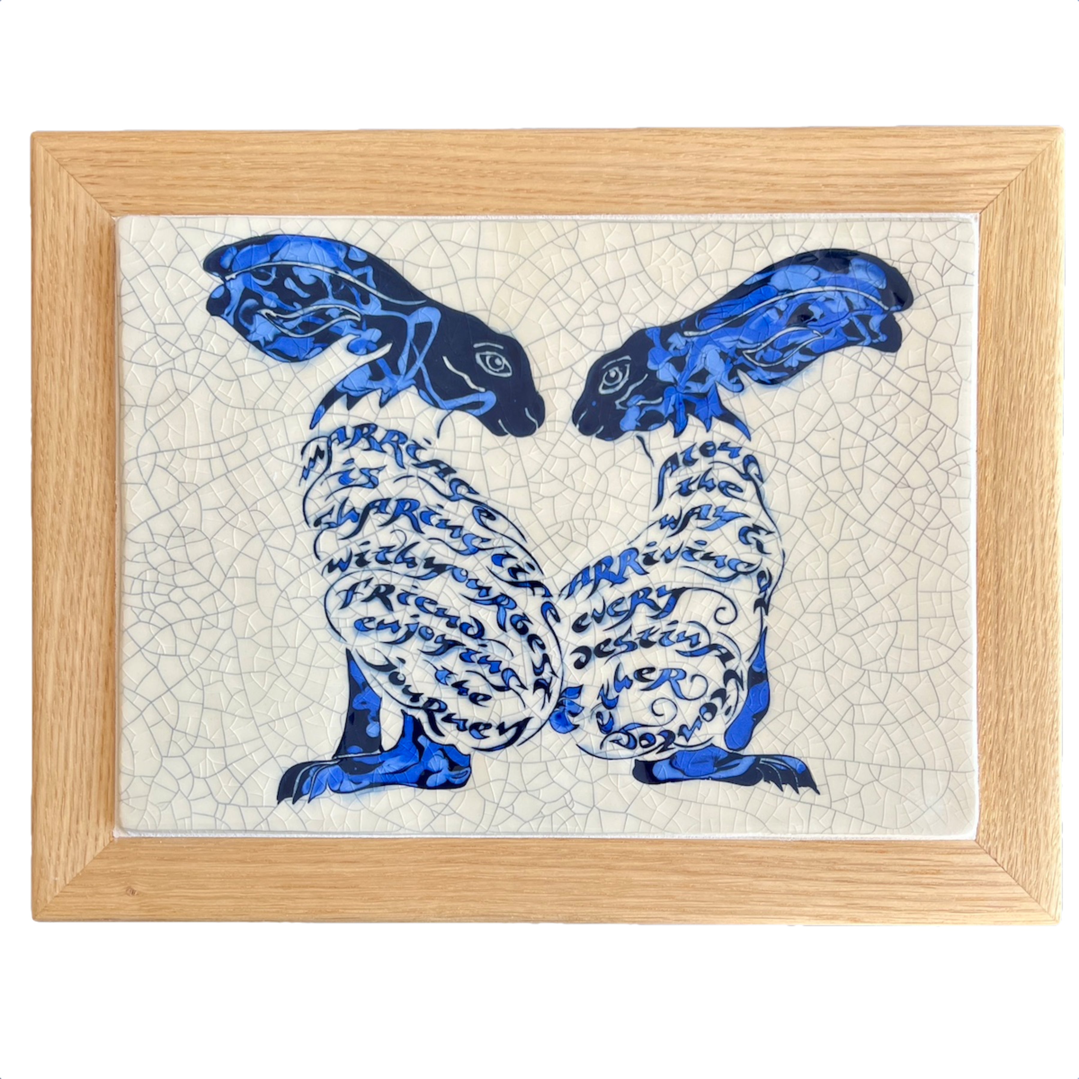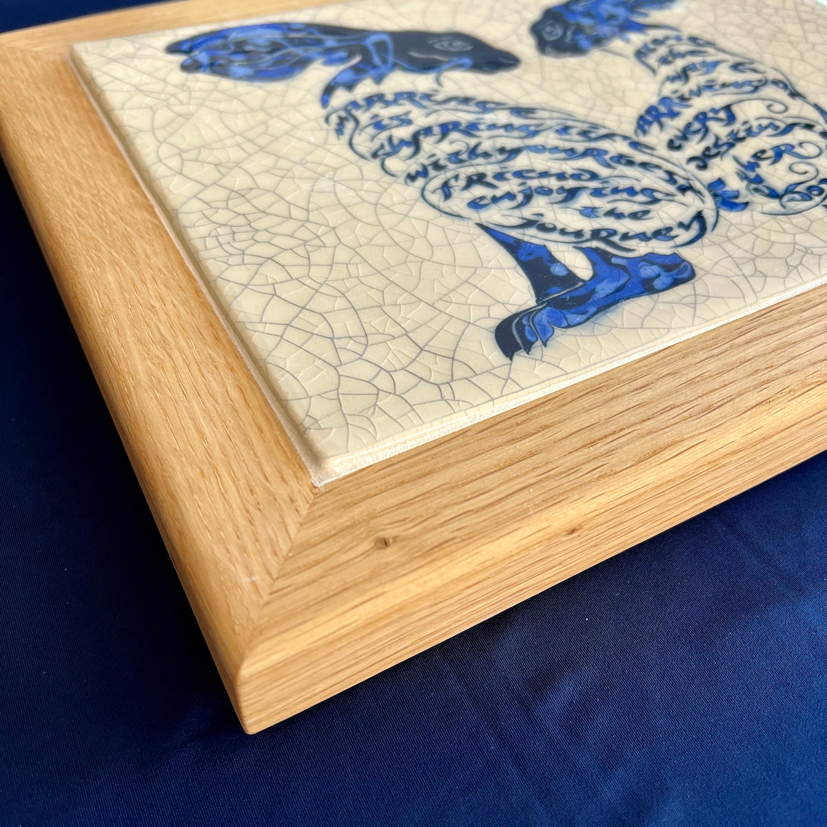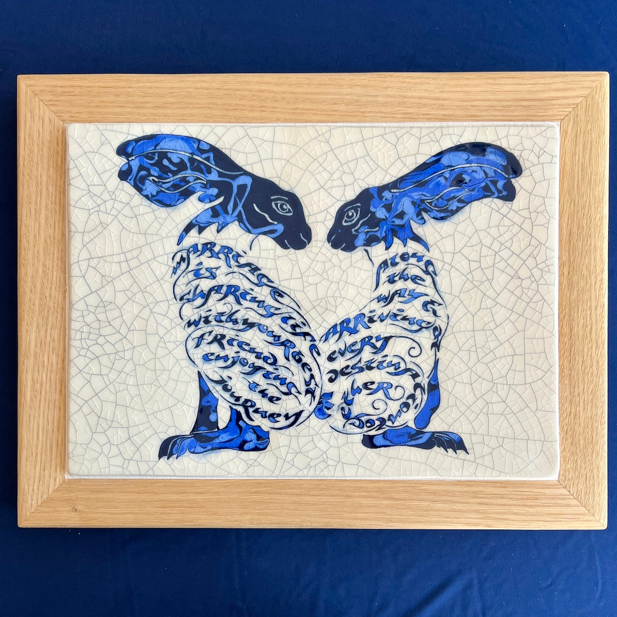 Individually hand carved ceramic inlay tile. Each piece is an original and cannot be replicated.