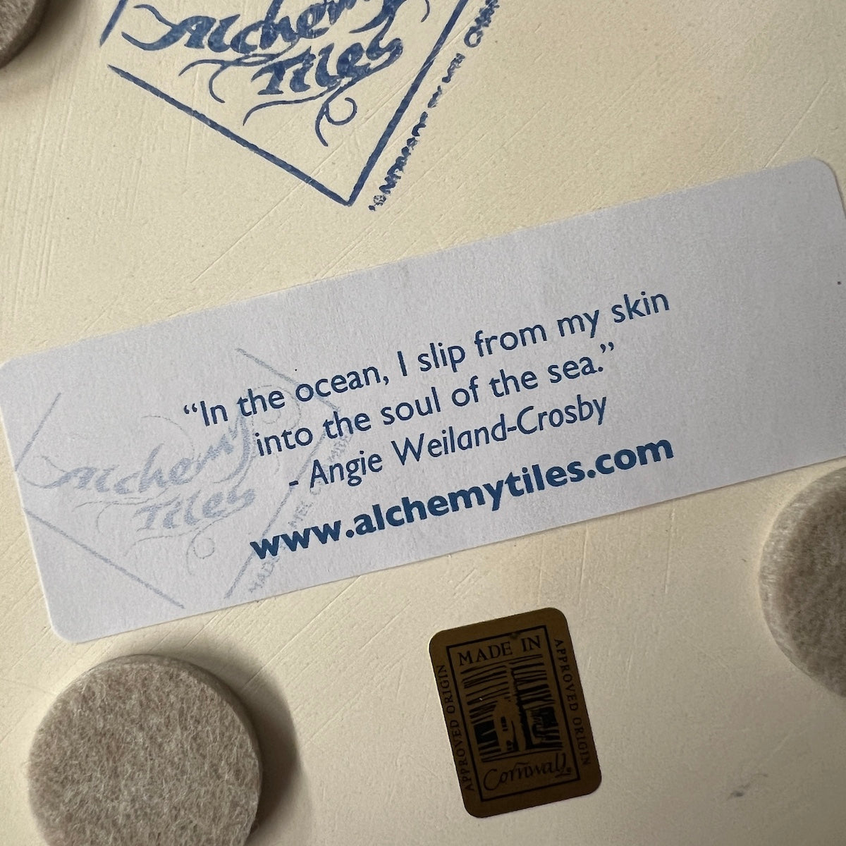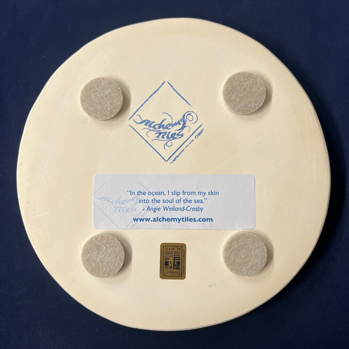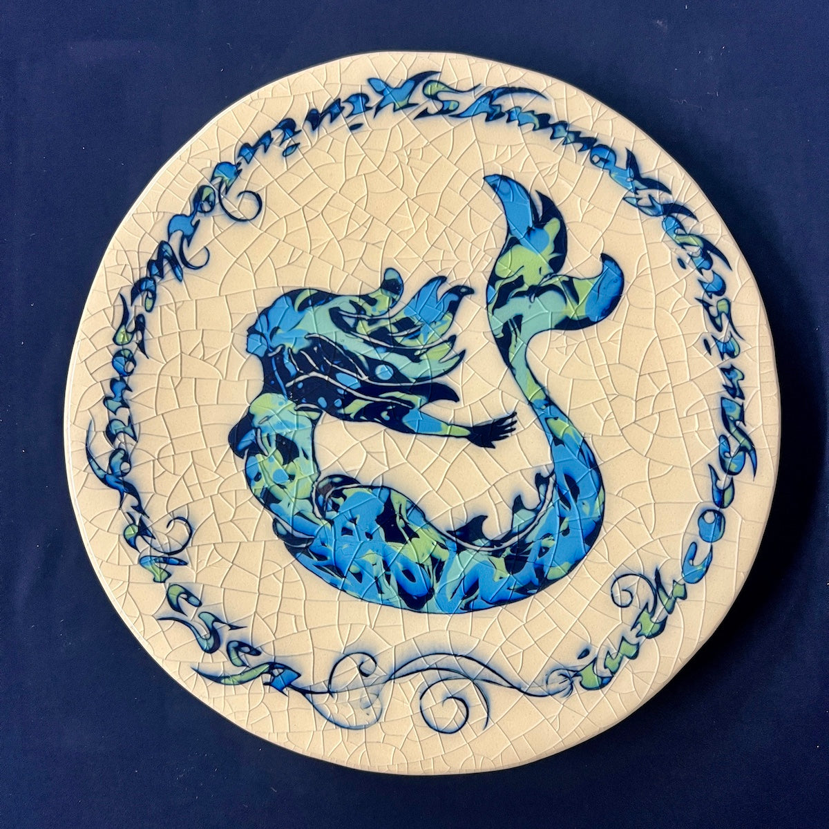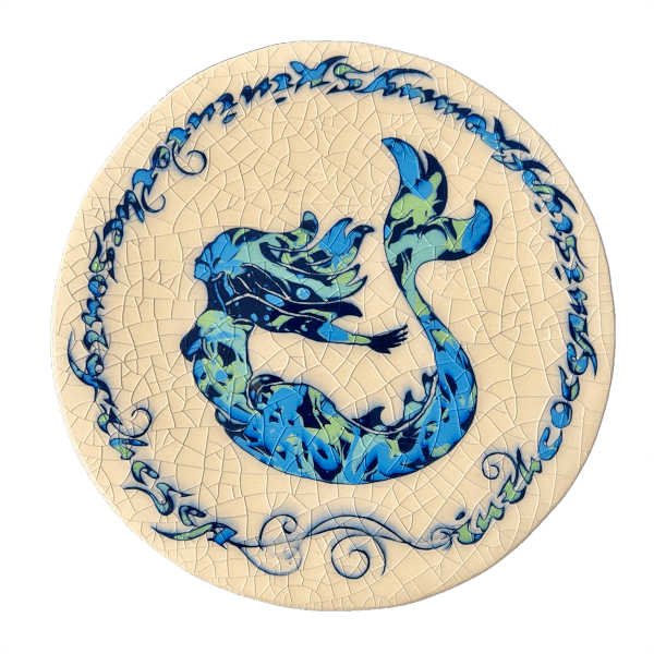 Individually hand carved ceramic inlay tile. Each piece is an original and cannot be replicated.