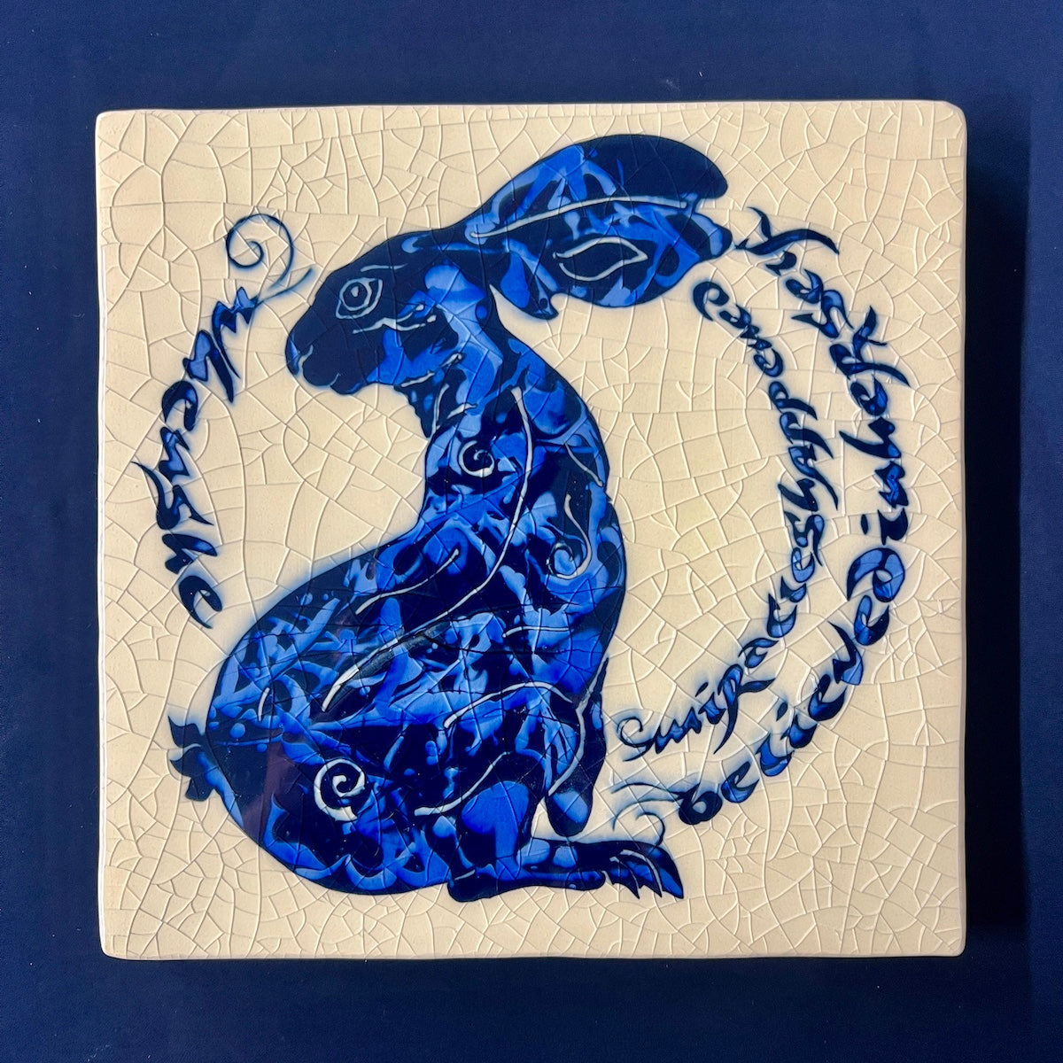 Individually hand carved ceramic inlay tile. Each piece is an original and cannot be replicated.