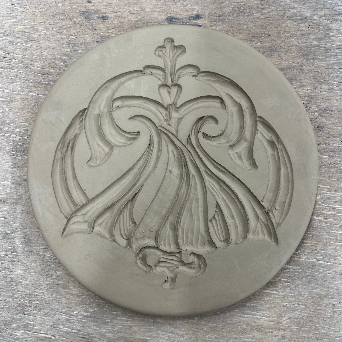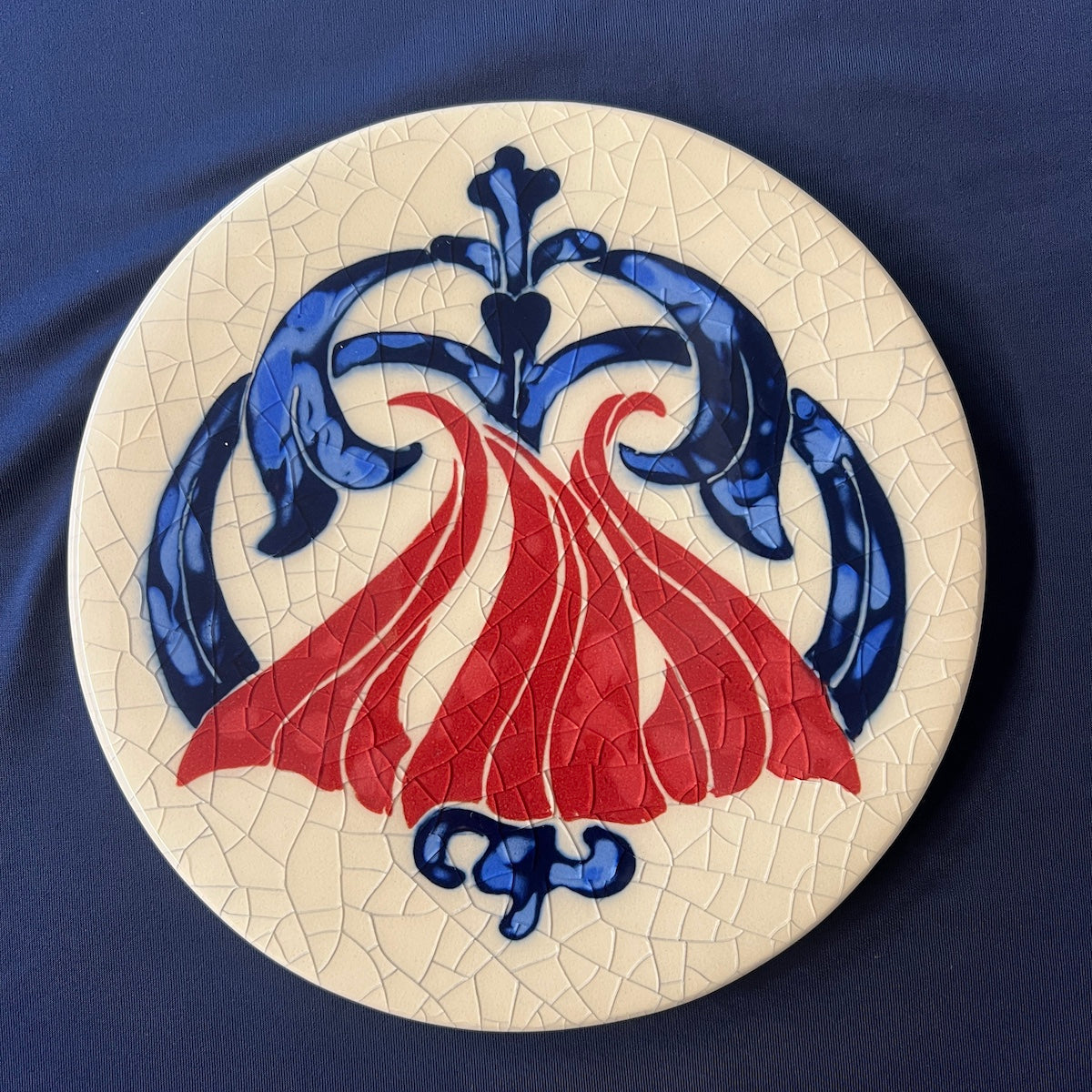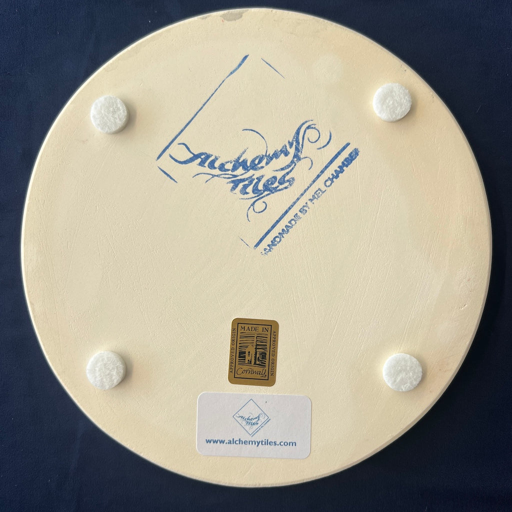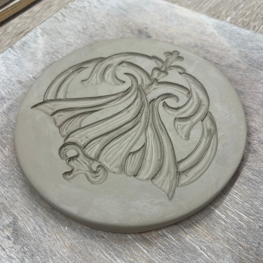 Individually hand carved ceramic inlay tile. Each piece is an original and cannot be replicated.
