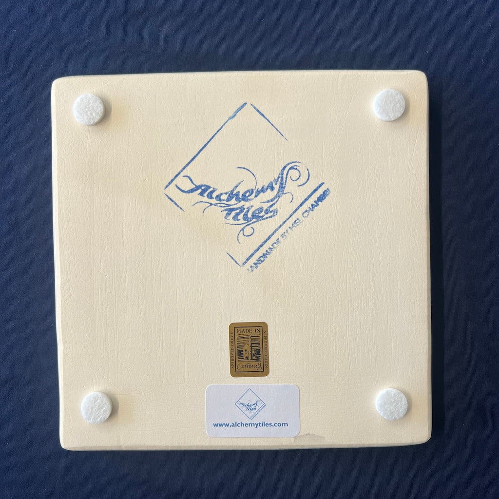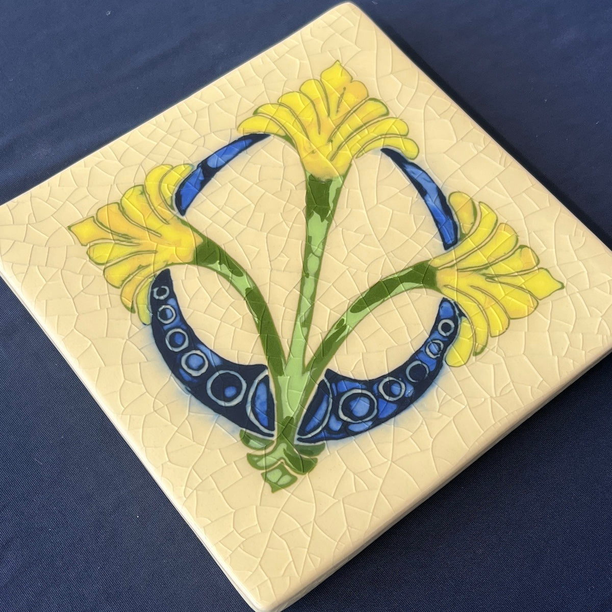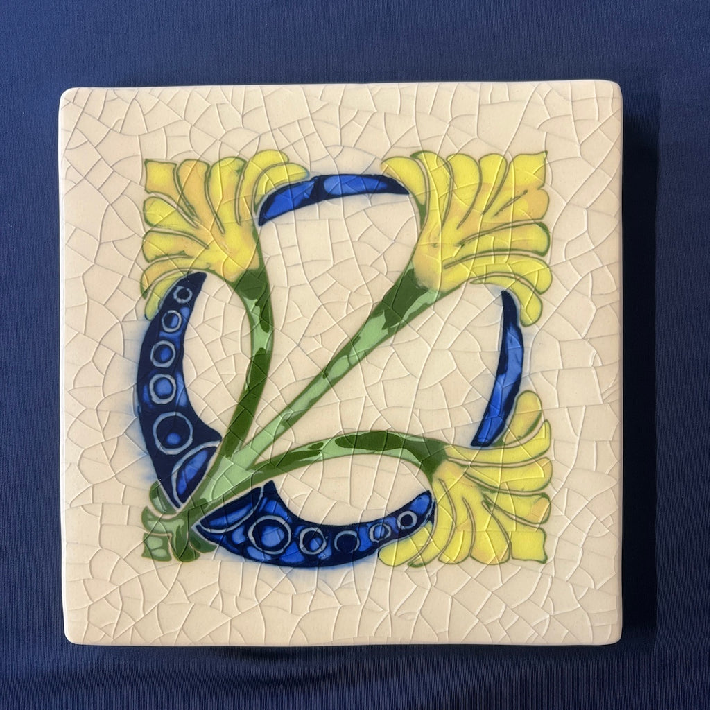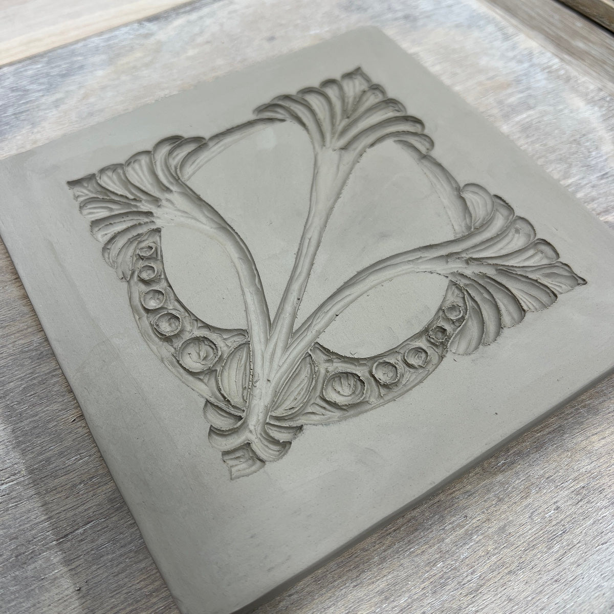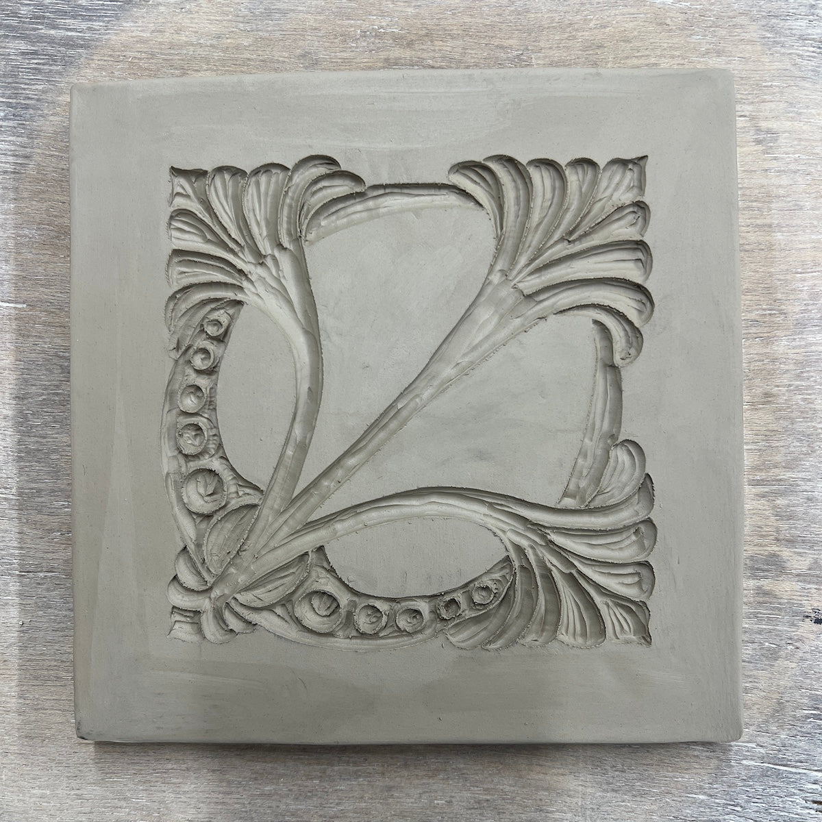 Individually hand carved ceramic inlay tile. Each piece is an original and cannot be replicated.
