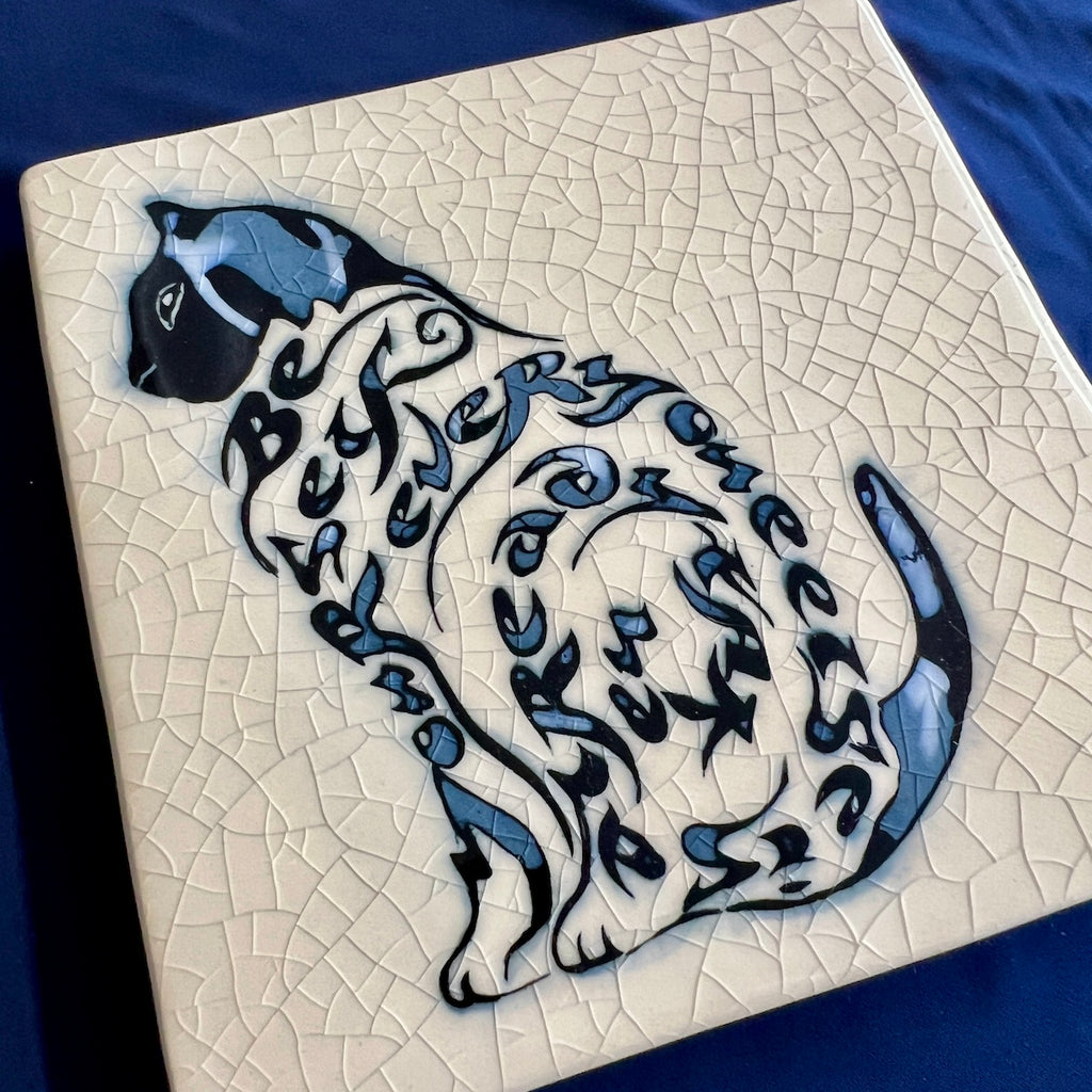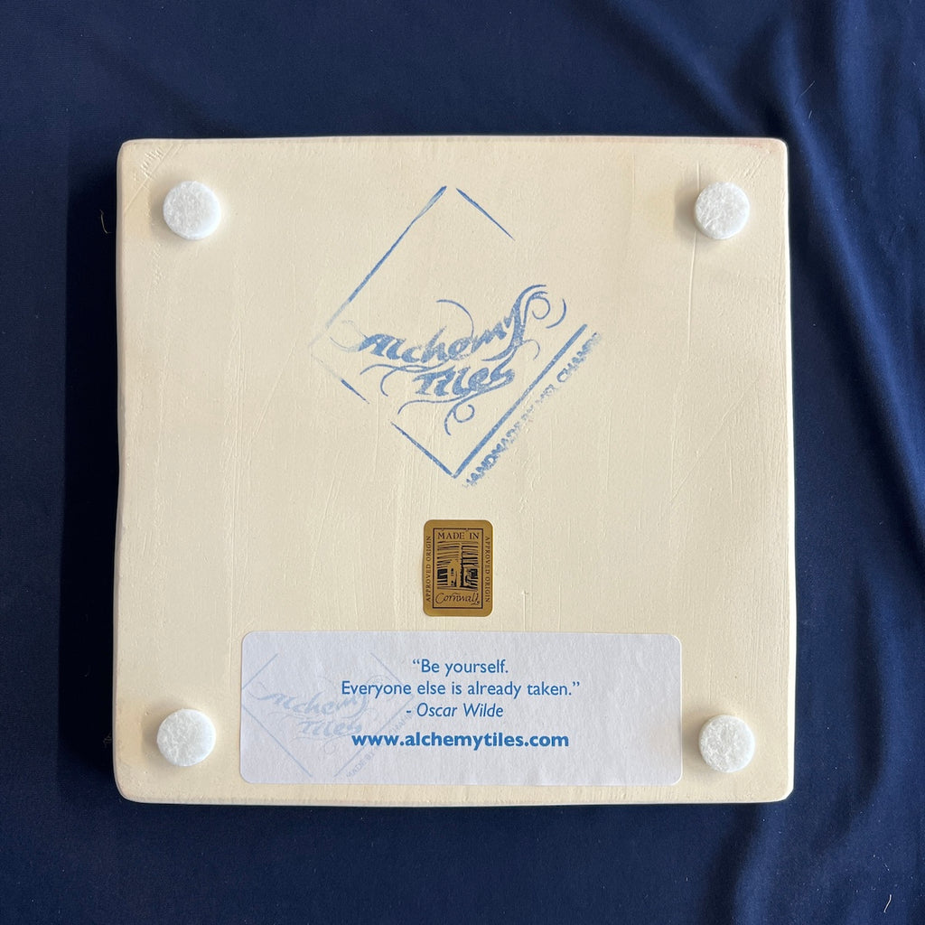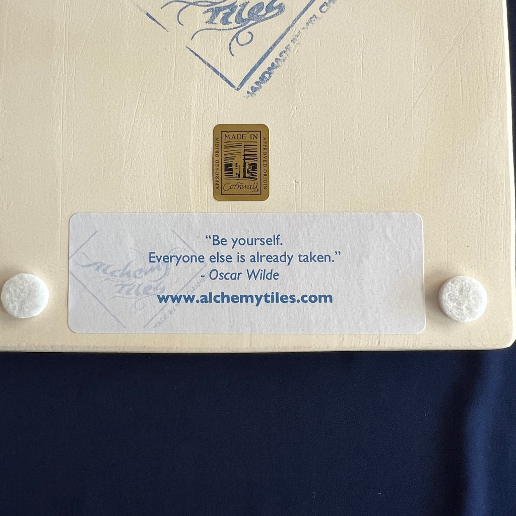 Individually hand carved ceramic inlay tile. Each piece is an original and cannot be replicated.