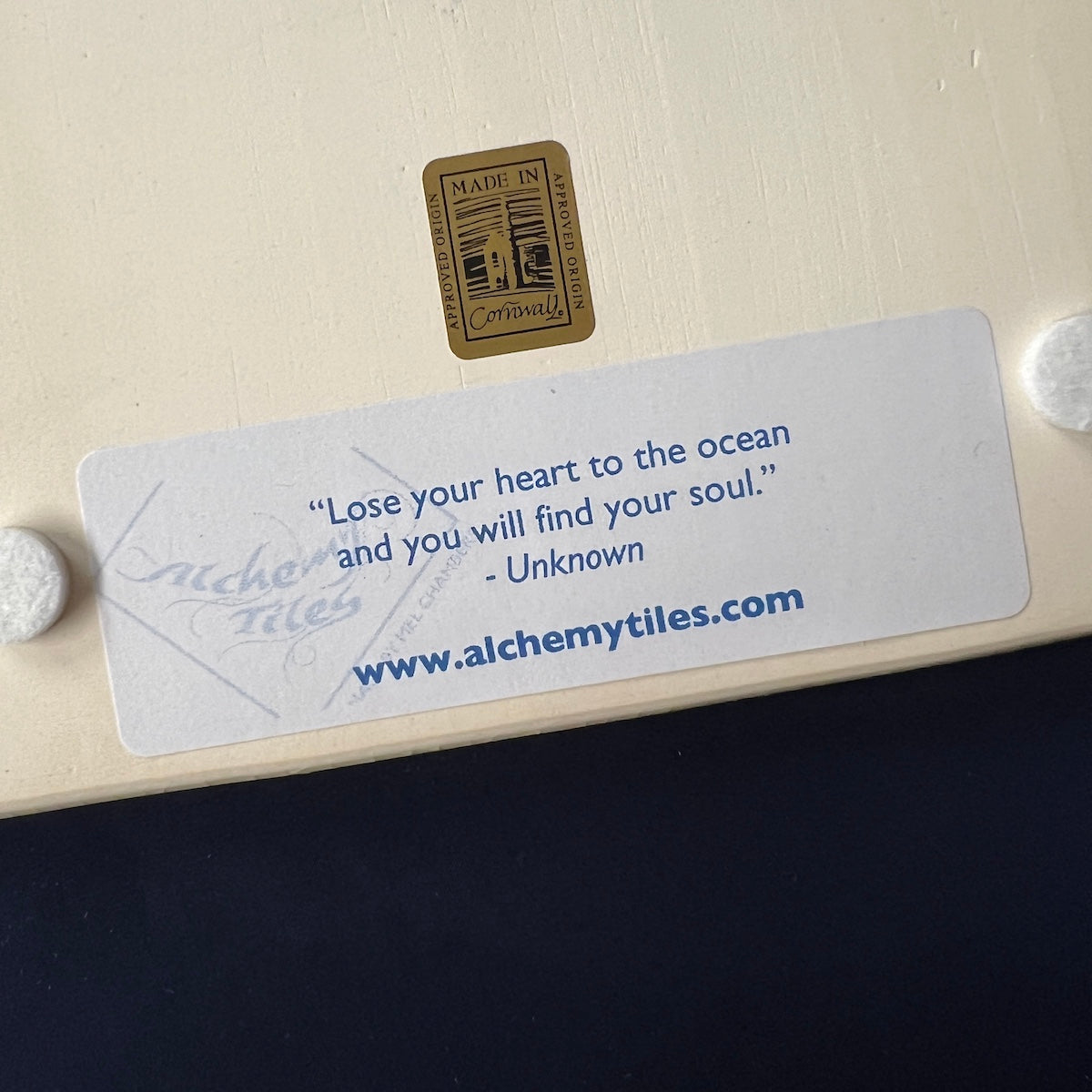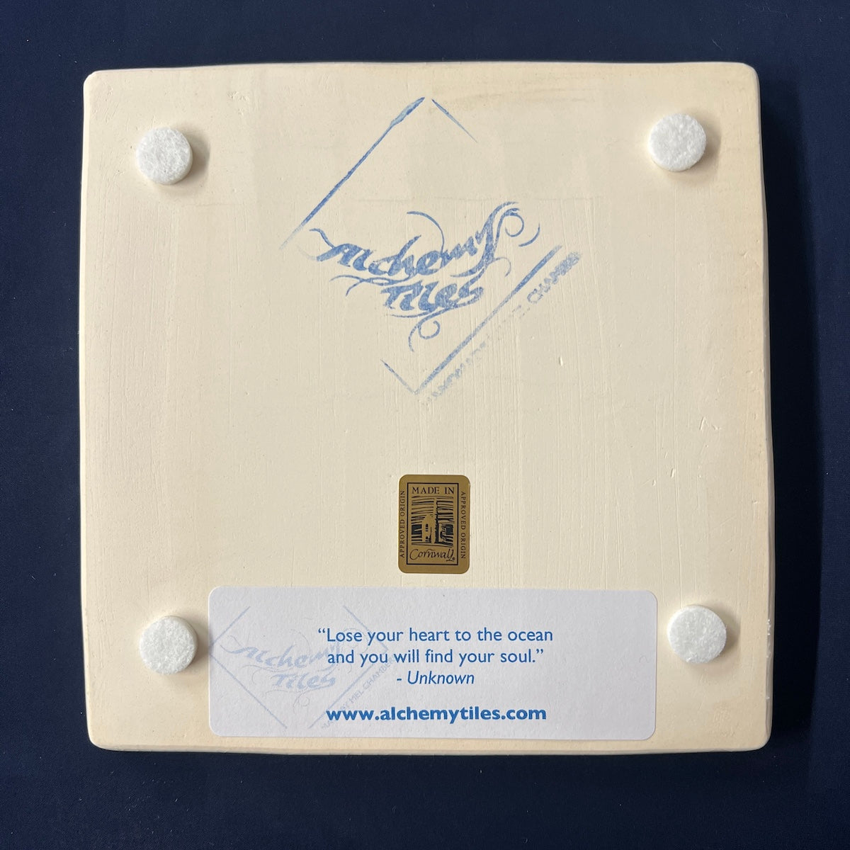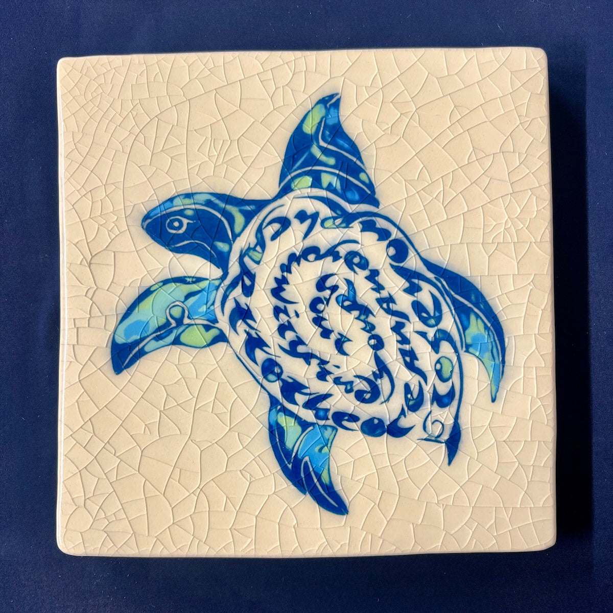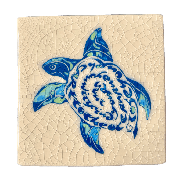 Individually hand carved ceramic inlay tile. Each piece is an original and cannot be replicated.