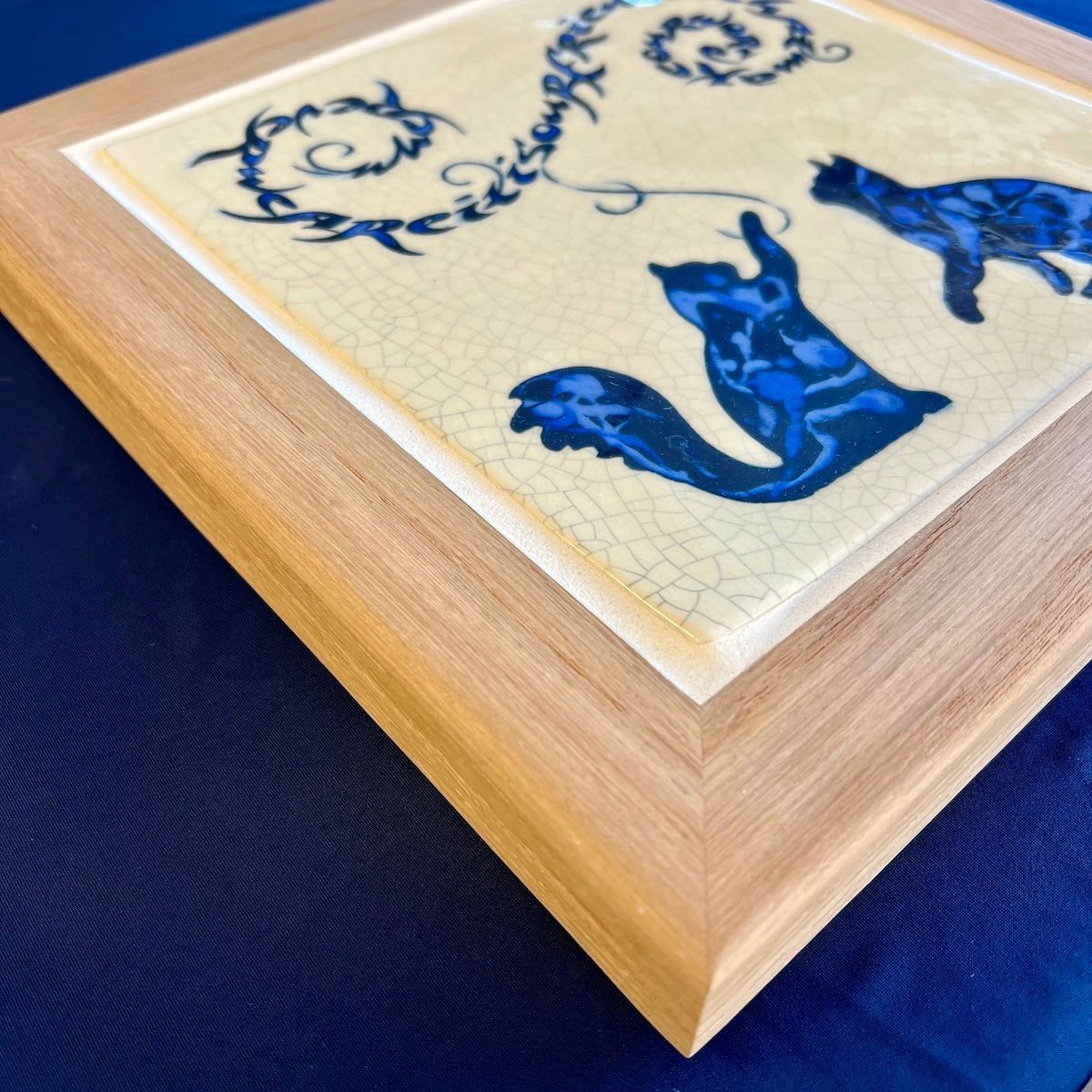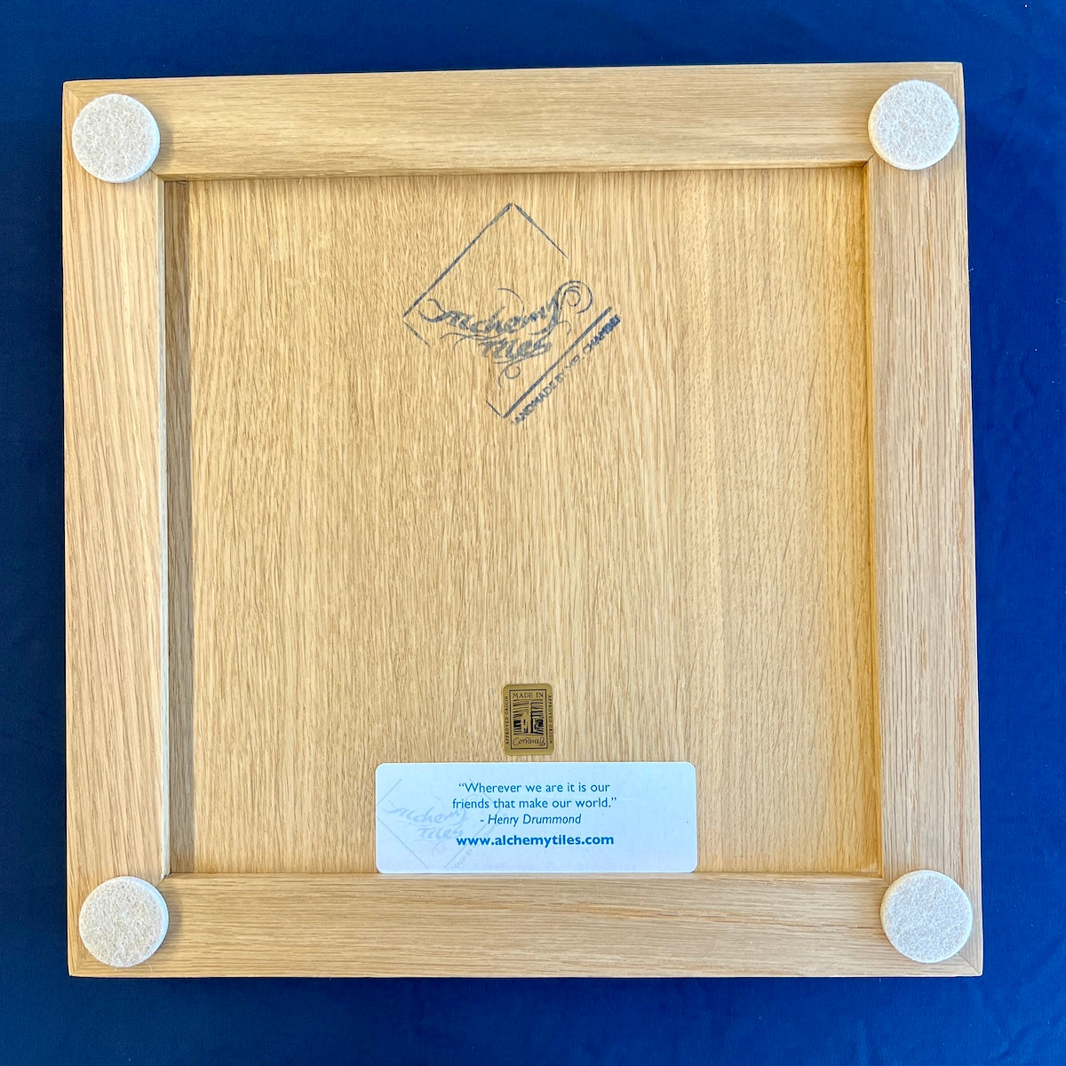 Individually hand carved ceramic inlay tile. Each piece is an original and cannot be replicated.