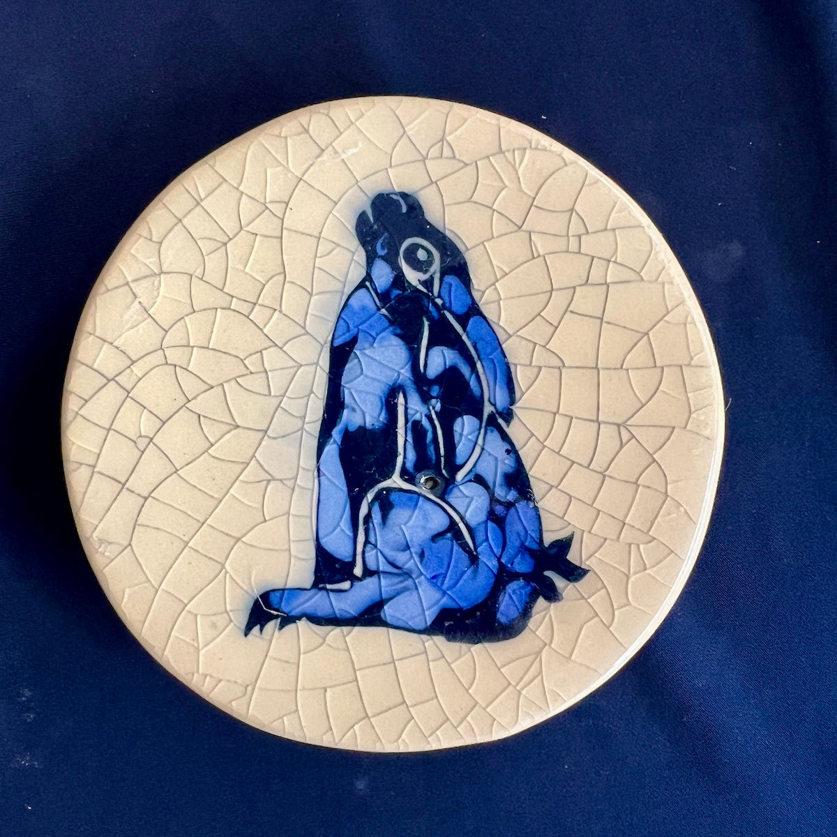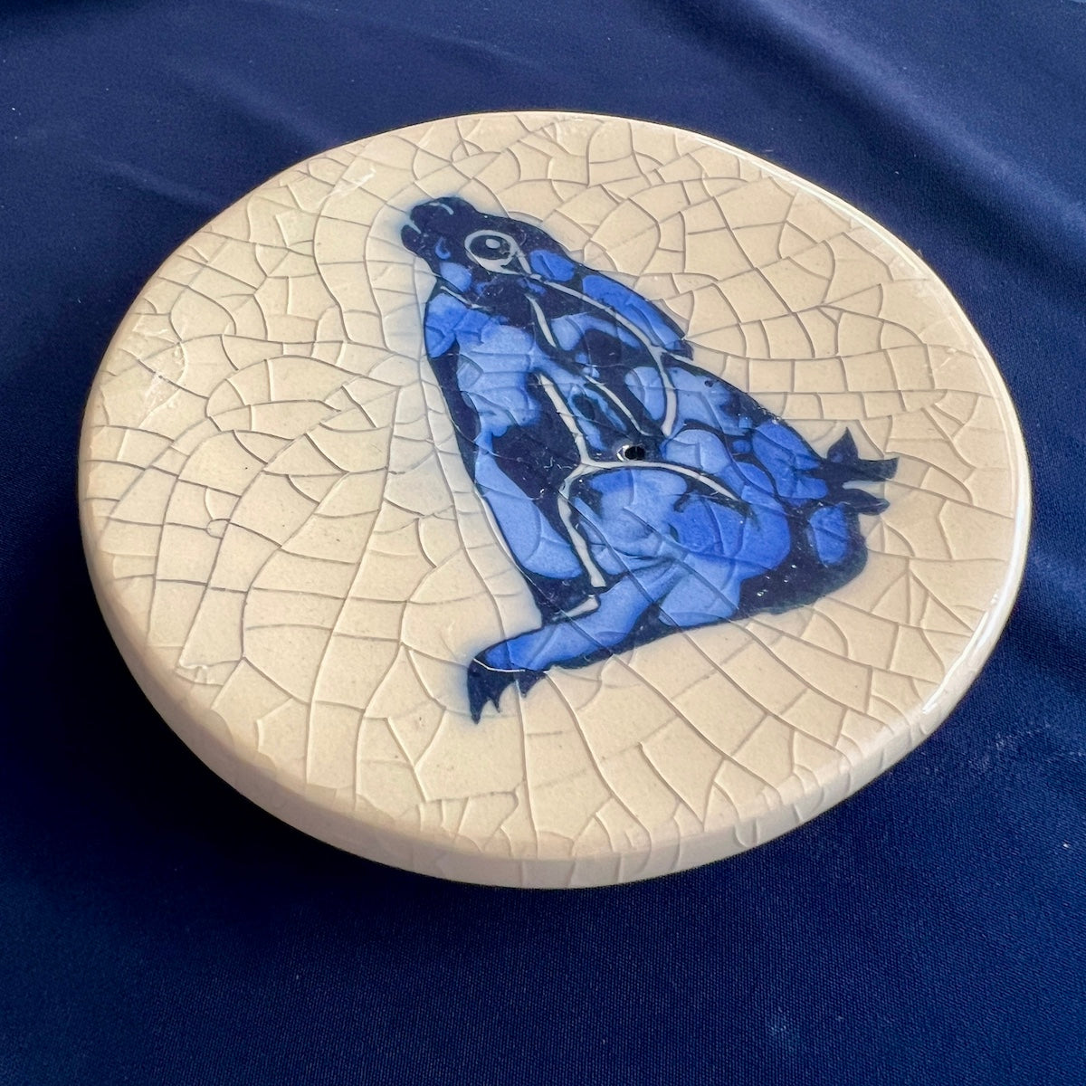 Individually hand carved ceramic inlay tile. Each piece is an original and cannot be replicated.