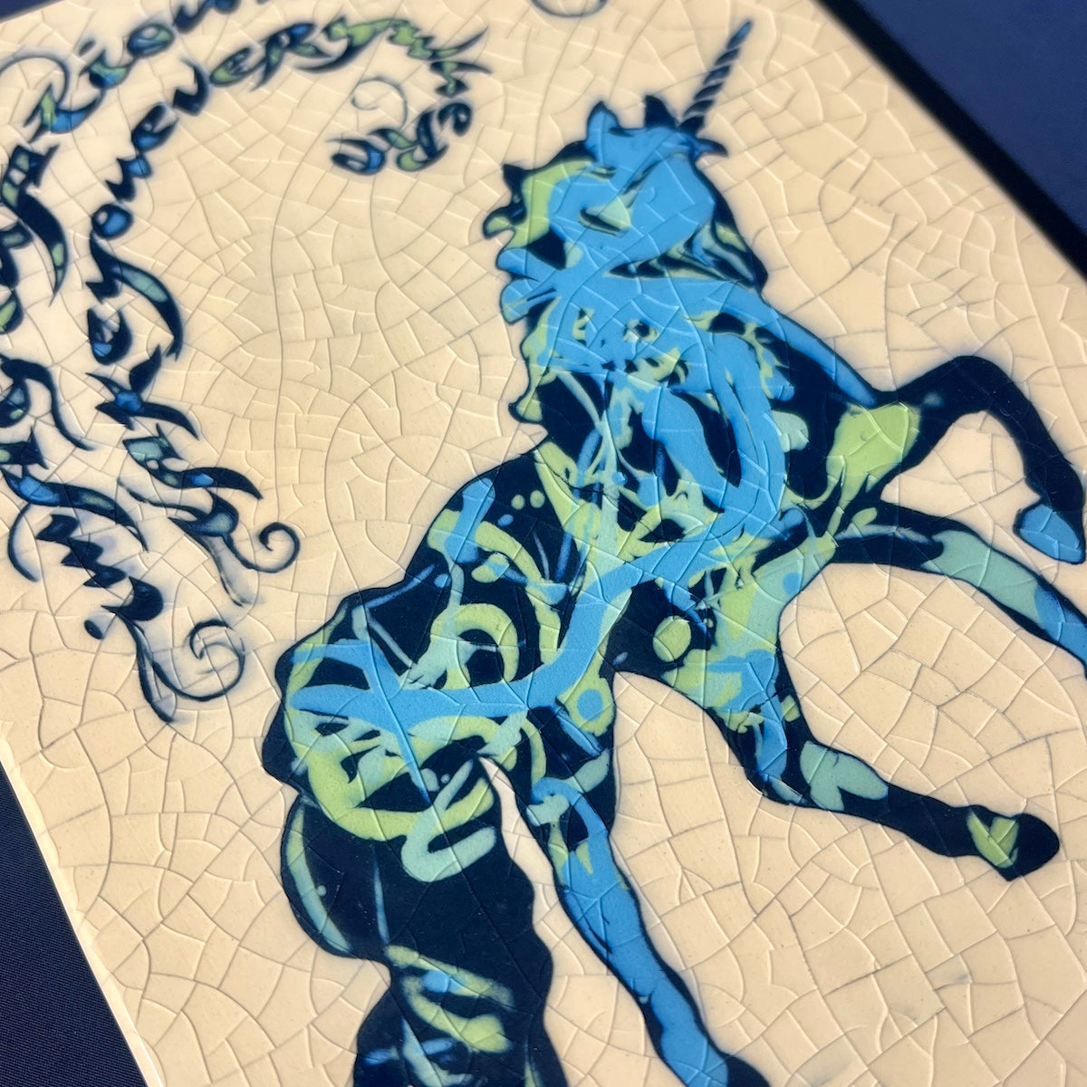 Individually hand carved ceramic inlay tile. Each piece is an original and cannot be replicated.